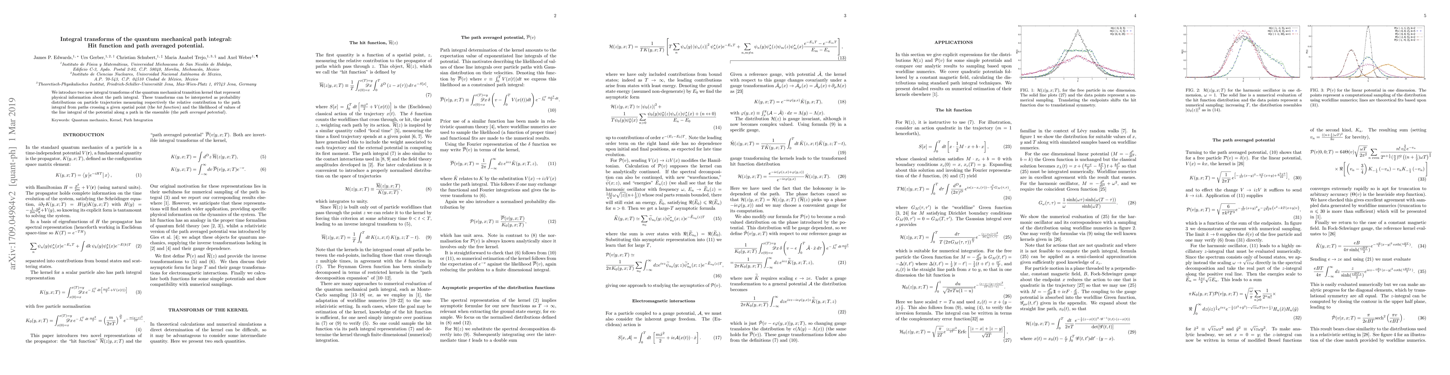 This paper introduces two new integral transforms for the quantum mechanical path integral, representing the hit function and path averaged potential, which provide physical insights into the relative contributions of particle trajectories and potential values.