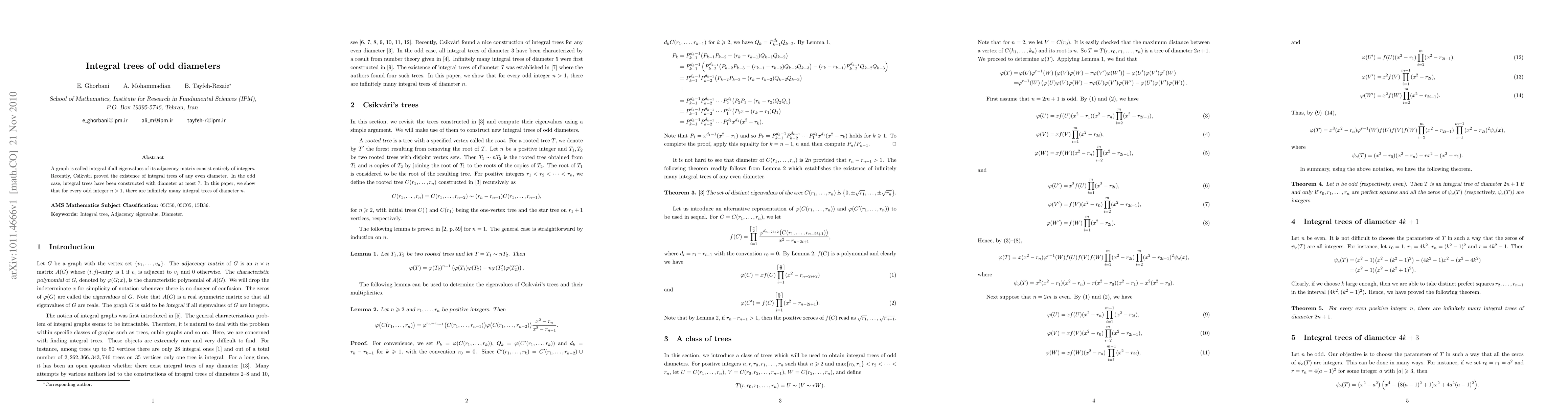 This paper demonstrates the existence of infinitely many integral trees for every odd integer diameter \( n > 1 \), extending previous results that only constructed such trees up to diameter 7. This resolves the open question regarding the existence of integral trees with odd diameters.