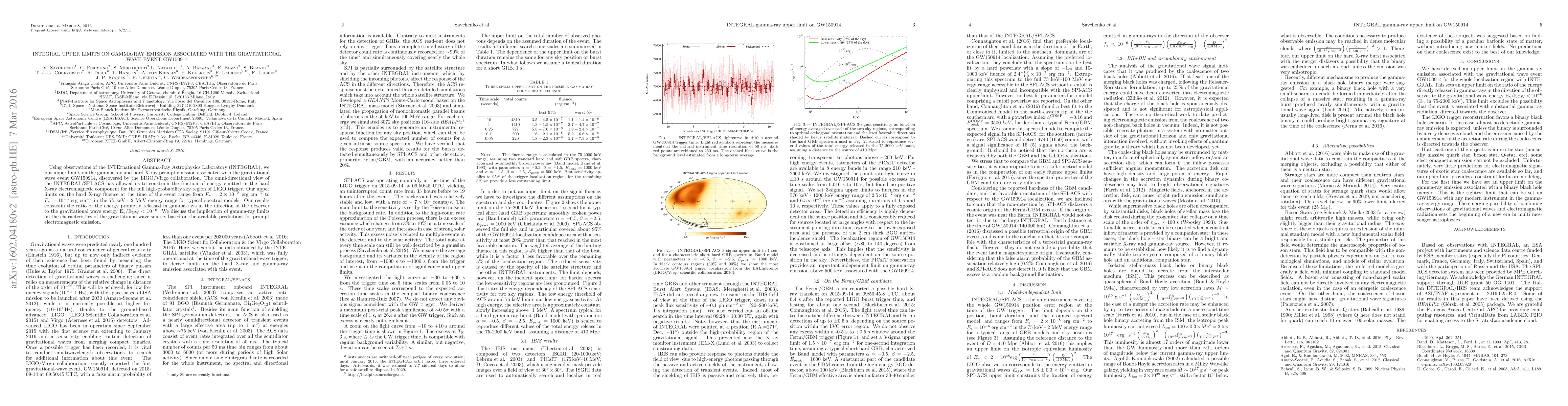 This paper reports upper limits on gamma-ray and hard X-ray emission from the gravitational wave event GW150914 using INTEGRAL observations. The findings constrain the energy ratio of prompt electromagnetic to gravitational wave emission to less than $10^{-6}$.