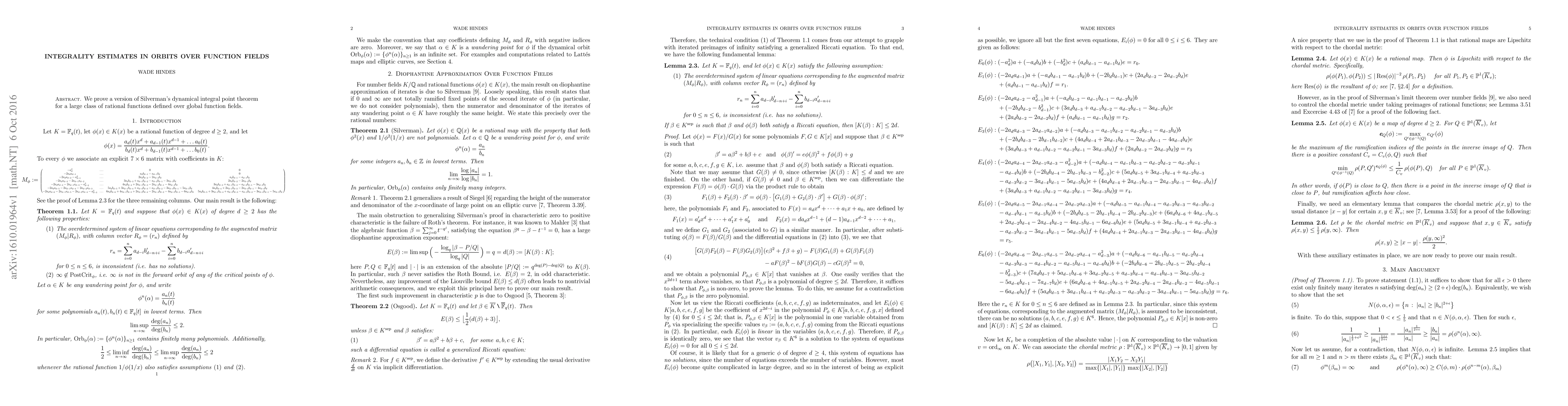 Summary: This paper establishes a version of Silverman's dynamical integral point theorem for rational functions over global function fields, providing integrality estimates for orbits. This extends the theorem to a broader mathematical context beyond number fields.