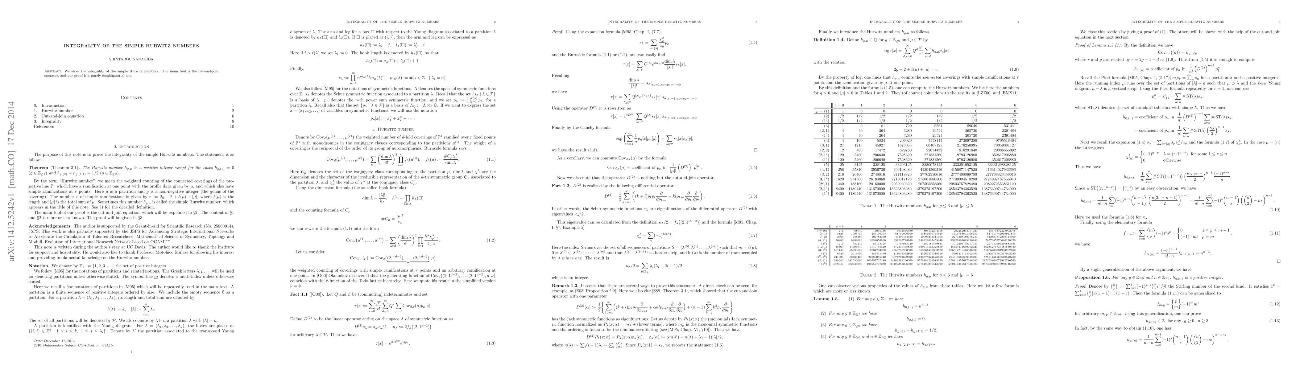 Summary: This paper demonstrates the integrality of simple Hurwitz numbers using a combinatorial approach based on the cut-and-join operator, providing a purely combinatorial proof without relying on algebraic geometry.