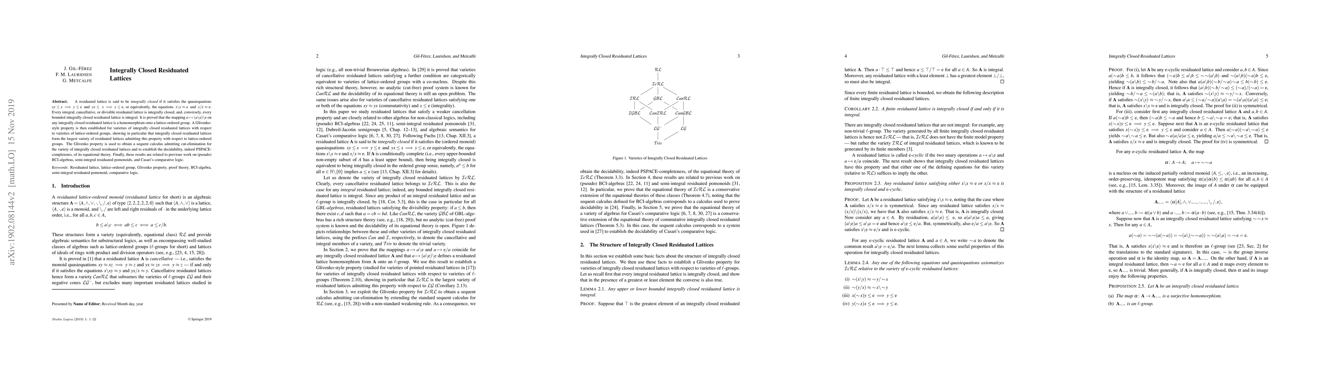 This paper explores integrally closed residuated lattices, proving they satisfy specific equations and establishing their homomorphism properties. It demonstrates a Glivenko-style property linking these lattices to lattice-ordered groups, resulting in a sequent calculus with cut-elimination and proving the PSPACE-completeness of their equational theory.
