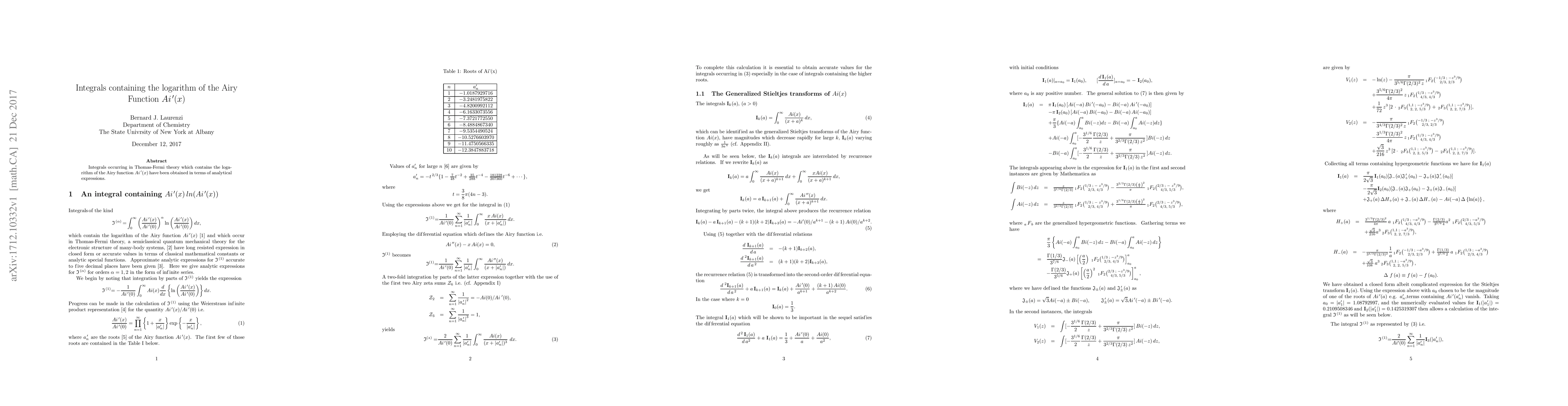 Researchers have developed analytical expressions for integrals containing the logarithm of the Airy function Ai'(x) in Thomas-Fermi theory, a breakthrough that sheds light on complex mathematical relationships.
