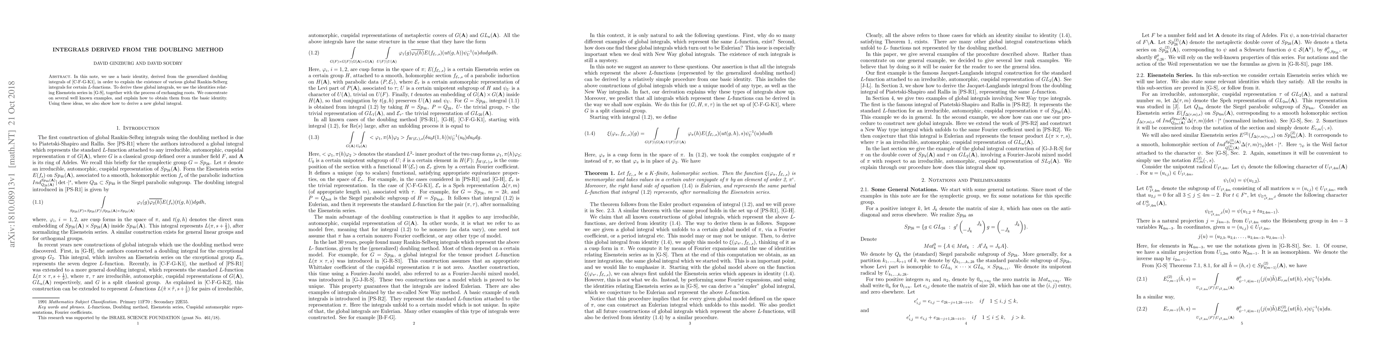 In this note, we use a basic identity, derived from the generalized doubling integrals of \cite{C-F-G-K1}, in order to explain the existence of various global Rankin-Selberg integrals for certain $L$-functions. To derive these global integrals, we use the identities relating Eisenstein series in \cite{G-S}, together with the process of exchanging roots. We concentrate on several well known examples, and explain how to obtain them from the basic identity. Using these ideas, we also show how to derive a new global integral.