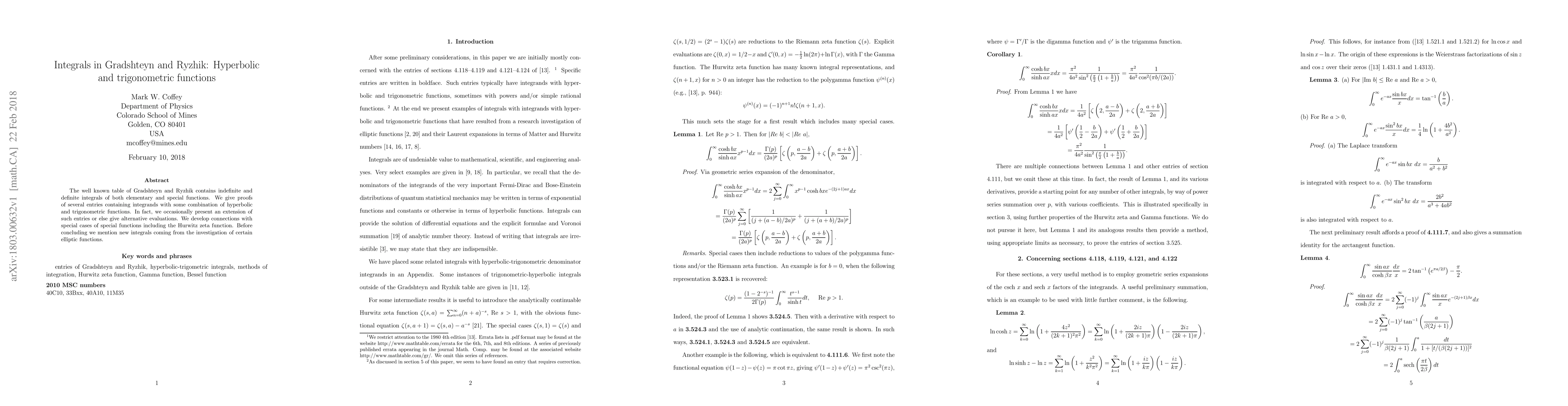 This paper provides proofs for selected integrals from Gradshteyn and Ryzhik involving combinations of hyperbolic and trigonometric functions, extending some entries and linking to special functions like the Hurwitz zeta function, with new findings from elliptic functions.