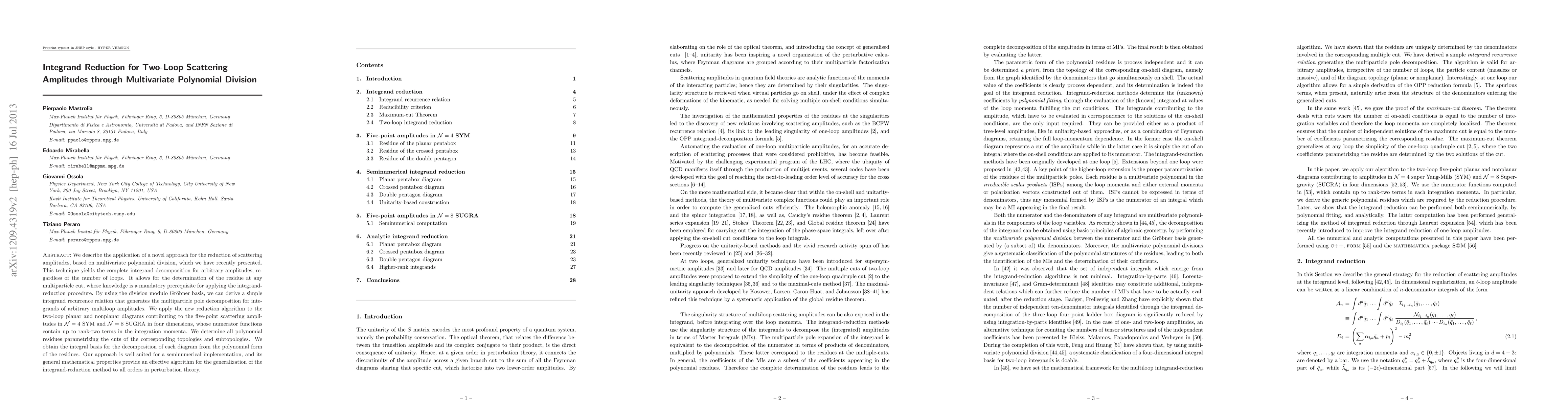 This paper introduces a novel multivariate polynomial division technique for reducing scattering amplitudes, enabling the decomposition of integrands for any loop order. The method determines the residues at multiparticle cuts and generates a recurrence relation for multiloop amplitudes, applied to two-loop diagrams in N=4 super Yang-Mills and N=8 supergravity.