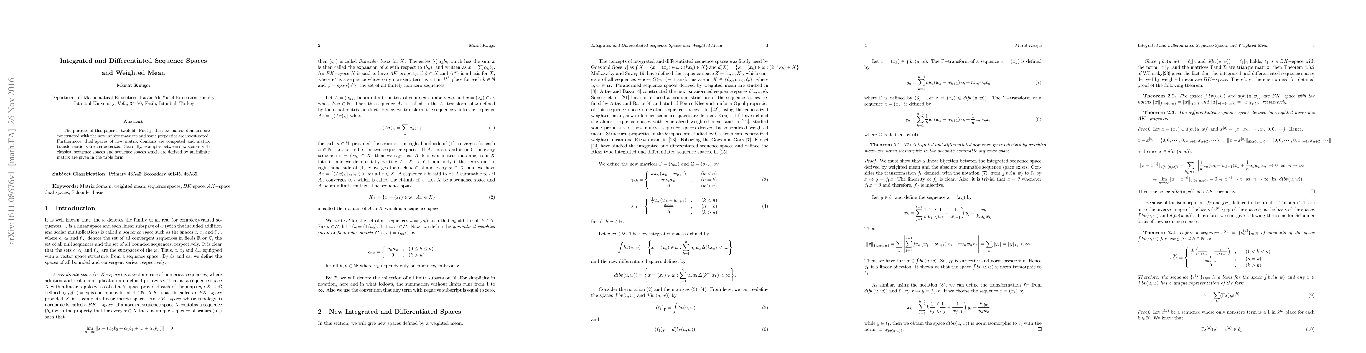 The purpose of this paper is twofold. Firstly, the new matrix domains are constructed with the new infinite matrices and some properties are investigated. Furthermore, dual spaces of new matrix domains are computed and matrix transformations are characterized. Secondly, examples between new spaces with classical sequence spaces and sequence spaces which are derived by an infinite matrix are given in the table form.