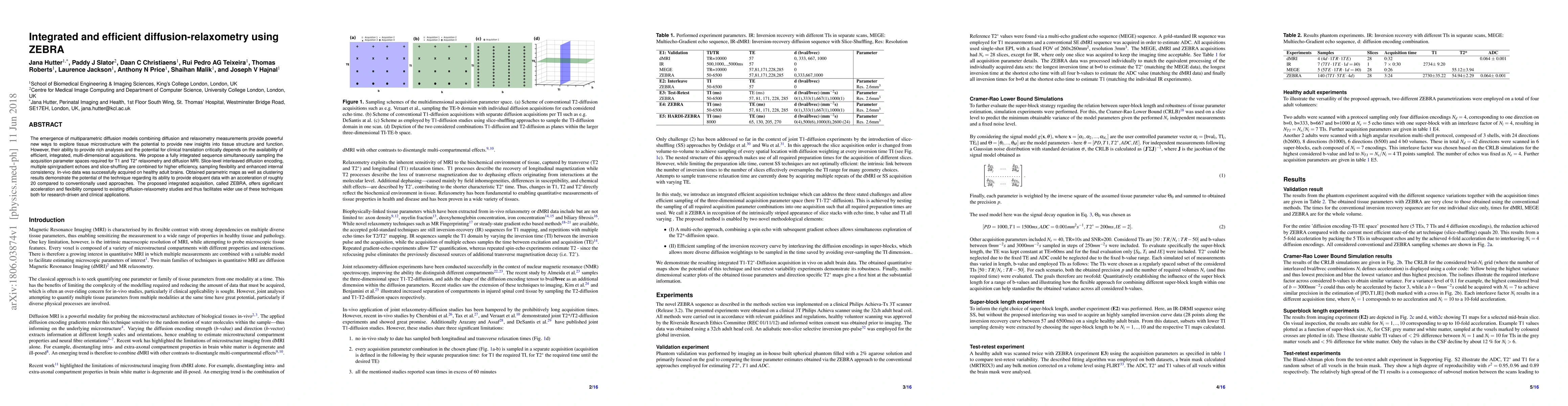 The paper introduces ZEBRA, a novel integrated sequence for efficient multiparametric diffusion-relaxometry, combining T1 and T2* relaxometry with diffusion MRI. The method achieves significant acceleration and flexibility, demonstrating potential for both research and clinical applications through in-vivo brain data.