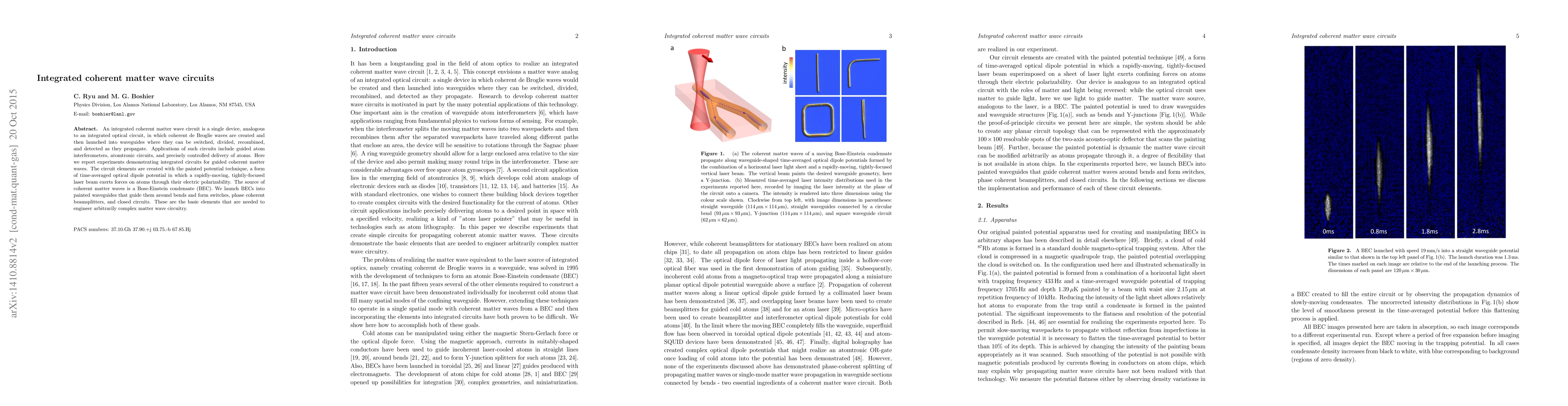 This paper reports on the development of integrated coherent matter wave circuits using Bose-Einstein condensates (BECs) as sources, guided by painted potential waveguides. The circuits demonstrate basic elements like switches, beamsplitters, and closed loops, paving the way for applications in atom interferometry and atomtronics.