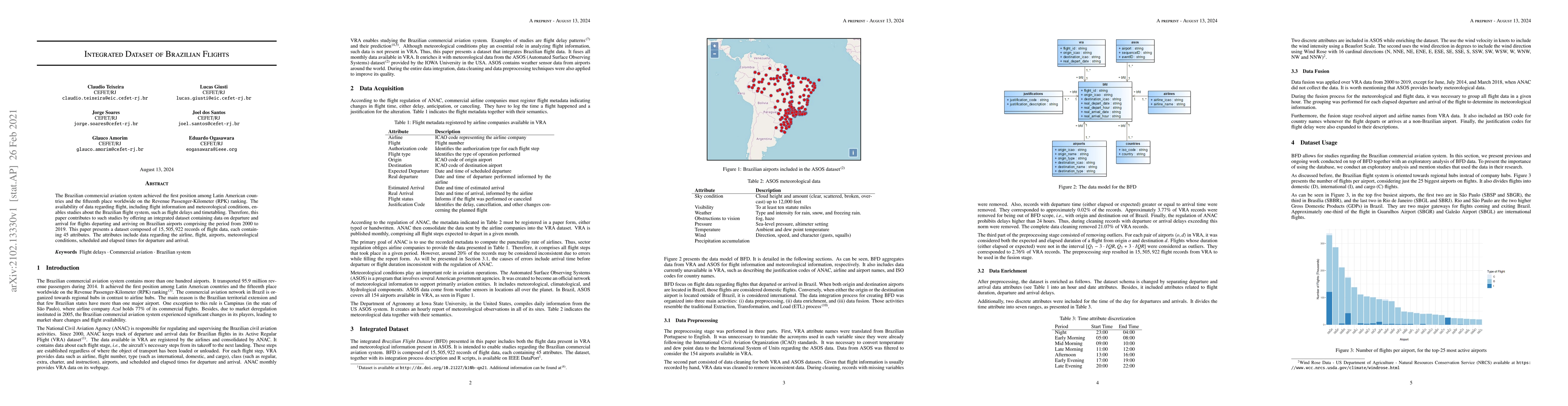 The Brazilian commercial aviation system achieved the first position among Latin American countries and the fifteenth place worldwide on the Revenue Passenger-Kilometer (RPK) ranking. The availability of data regarding flight, including flight information and meteorological conditions, enables studies about the Brazilian flight system, such as flight delays and timetabling. Therefore, this paper contributes to such studies by offering an integrated dataset containing data on departure and arrival for flights departing and arriving at Brazilian airports comprising the period from 2000 to 2019. This paper presents a dataset composed of $15,505,922$ records of flight data, each containing 45 attributes. The attributes include data regarding the airline, flight, airports, meteorological conditions, scheduled and elapsed times for departure and arrival.
