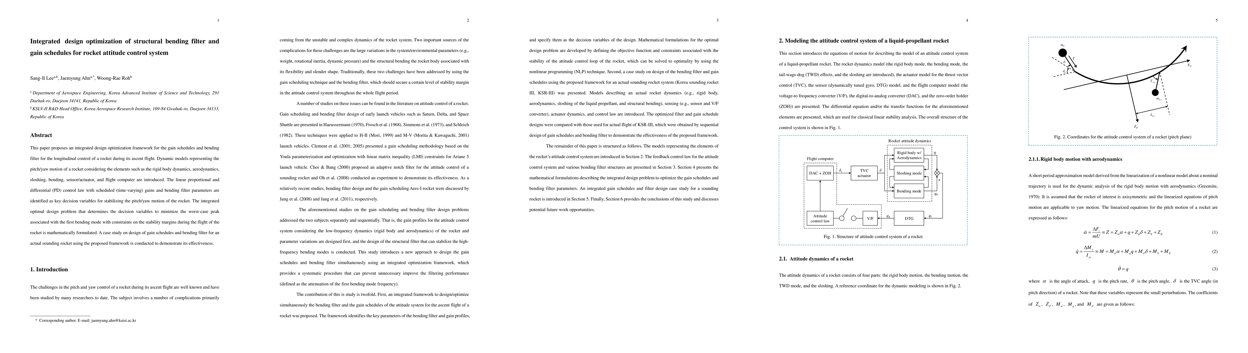 Researchers developed an integrated design optimization framework for a rocket's attitude control system to minimize worst-case peak motion and ensure stability during ascent flight. The framework uses dynamic models and optimal control laws to design gain schedules and bending filters.