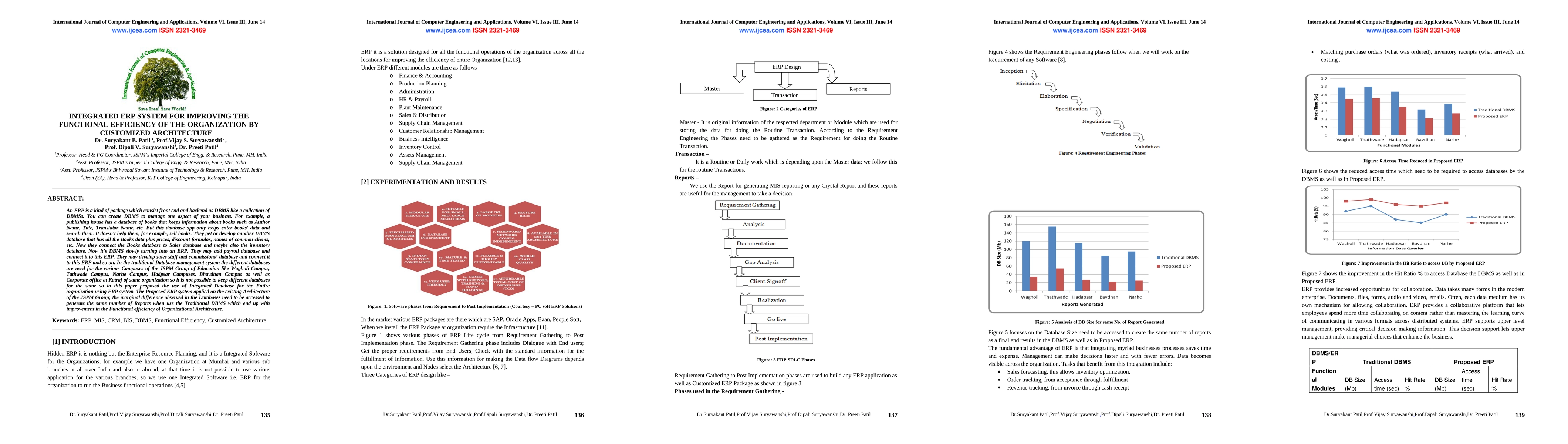 An ERP is a kind of package which consist front end and backend as DBMS like a collection of DBMSs. You can create DBMS to manage one aspect of your business. For example, a publishing house has a database of books that keeps information about books such as Author Name, Title, Translator Name, etc. But this database app only helps enter books data and search them. It doesn't help them, for example, sell books. They get or develop another DBMS database that has all the Books data plus prices, discount formulas, names of common clients, etc. Now they connect the Books database to Sales database and maybe also the inventory database. Now its DBMS slowly turning into an ERP. They may add payroll database and connect it to this ERP. They may develop sales staff and commissions database and connect it to this ERP and so on. In the traditional Database management system the different databases are used for the various Campuses of the JSPM Group of Education like Wagholi Campus, Tathwade Campus, Narhe Campus, Hadpsar Campuses, Bhavdhan Campus as well as Corporate office at Katraj of same organization so it is not possible to keep different databases for the same so in this paper proposed the use of Integrated Database for the Entire organization using ERP system. The Proposed ERP system applied on the existing Architecture of the JSPM Group; the marginal difference observed in the Databases need to be accessed to generate the same number of Reports when use the Traditional DBMS which end up with improvement in the Functional efficiency of Organizational Architecture.