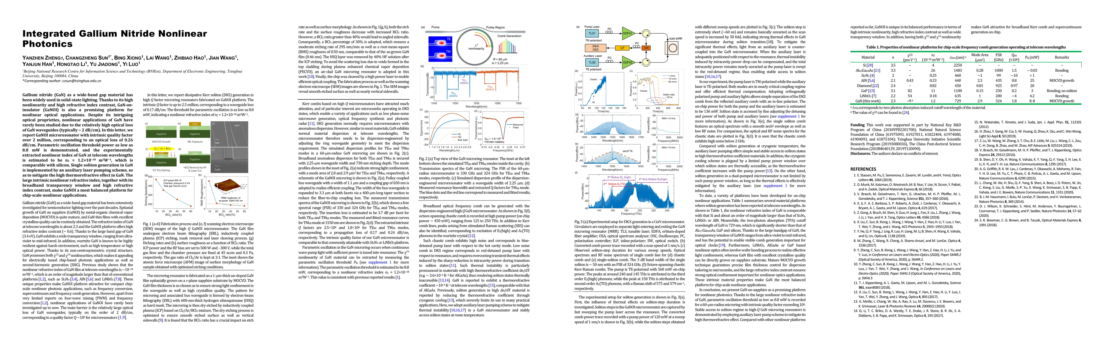 The paper presents a high-Q GaNOI microring resonator with low parametric oscillation threshold, demonstrating GaN's potential for chip-scale nonlinear photonics.