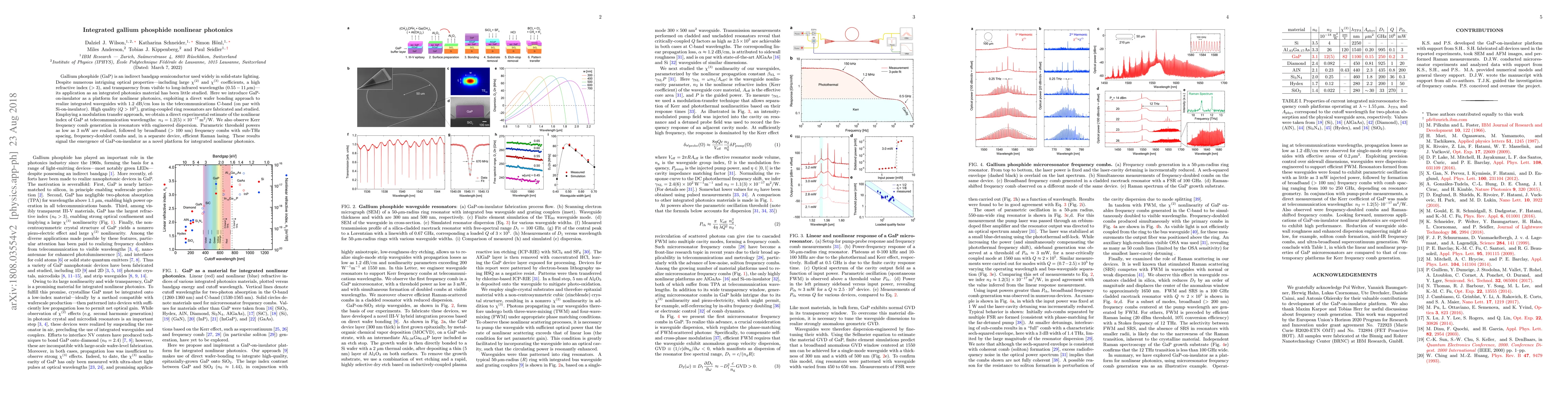This paper introduces gallium phosphide (GaP) as a promising material for integrated nonlinear photonics, achieving low-loss waveguides and demonstrating Kerr frequency comb generation, efficient parametric processes, and Raman lasing with low threshold powers, indicating GaP-on-insulator's potential in this field.