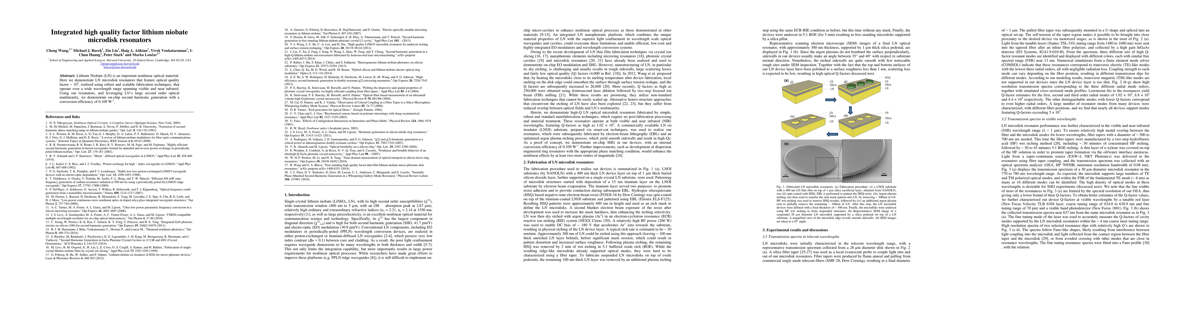 This paper demonstrates high-quality factor lithium niobate microdisk resonators with an optical quality factor of ~100,000, fabricated using scalable techniques, and shows on-chip second harmonic generation with a conversion efficiency of 0.109 W-1.