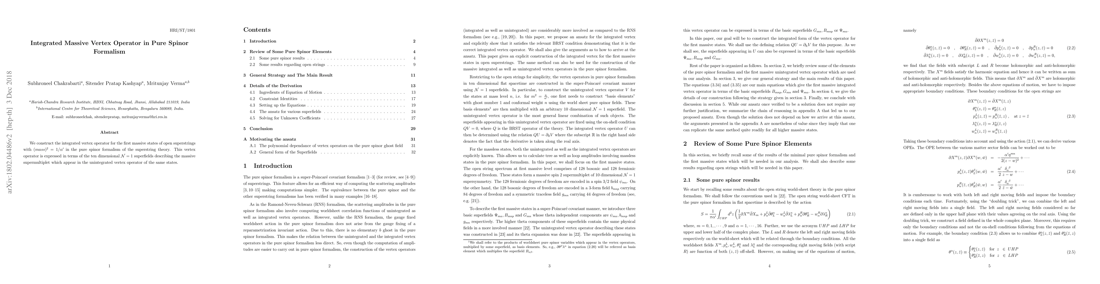 This paper constructs an integrated vertex operator for the first massive states of open superstrings in the pure spinor formalism, expressed in terms of ten-dimensional $\mathcal{N}=1$ superfields describing the corresponding massive supermultiplet. The mass squared of these states is given by $1/\alpha'$.