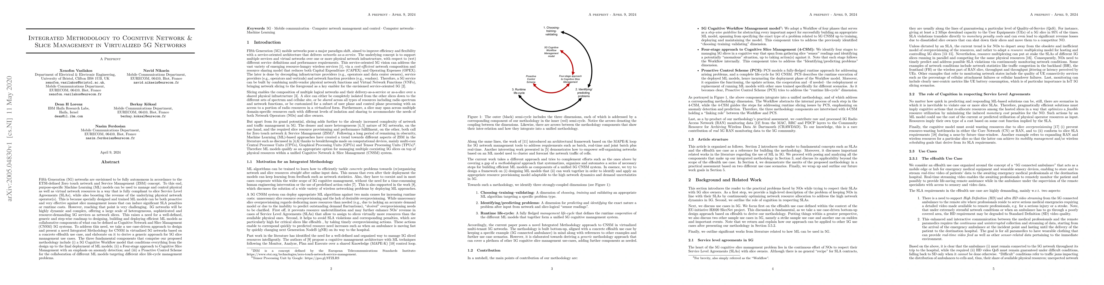 This paper proposes an Integrated Methodology for Cognitive Network and Slice Management (CNSM) in virtualized 5G networks, leveraging Machine Learning (ML) models to optimize resource allocation and ensure compliance with Service Level Agreements (SLAs). The methodology includes a 5G Cognitive Workflow model, a Four-stage approach for Cognitive Slice Management, and a Proactive Control Scheme for collaborative ML model management.