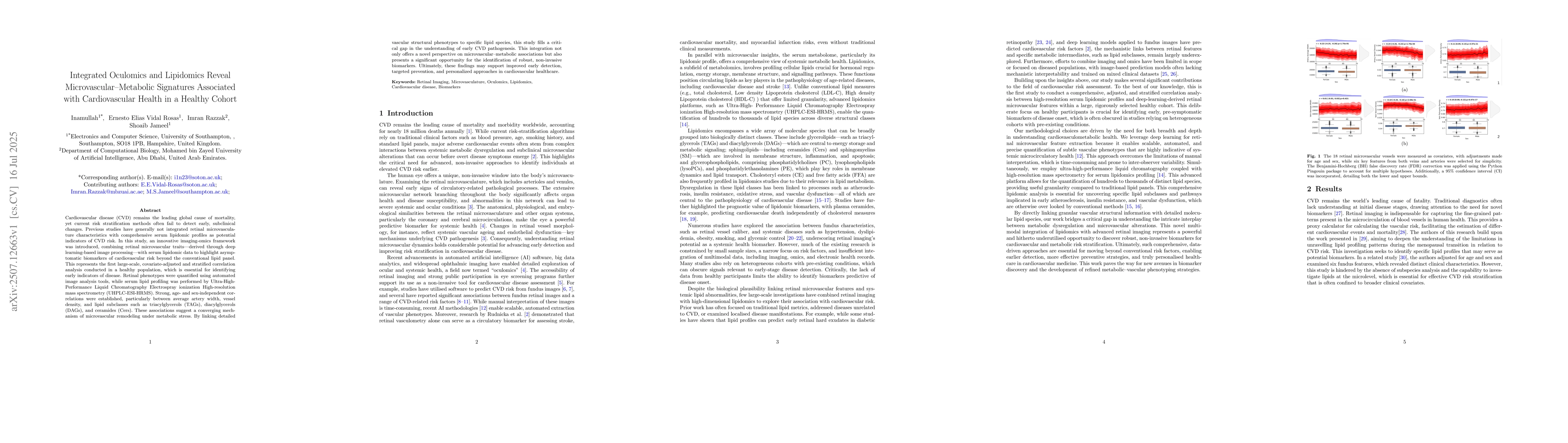 Cardiovascular disease (CVD) remains the leading global cause of mortality, yet current risk stratification methods often fail to detect early, subclinical changes. Previous studies have generally not integrated retinal microvasculature characteristics with comprehensive serum lipidomic profiles as potential indicators of CVD risk. In this study, an innovative imaging omics framework was introduced, combining retinal microvascular traits derived through deep learning based image processing with serum lipidomic data to highlight asymptomatic biomarkers of cardiovascular risk beyond the conventional lipid panel. This represents the first large scale, covariate adjusted and stratified correlation analysis conducted in a healthy population, which is essential for identifying early indicators of disease. Retinal phenotypes were quantified using automated image analysis tools, while serum lipid profiling was performed by Ultra High Performance Liquid Chromatography Electrospray ionization High resolution mass spectrometry (UHPLC ESI HRMS). Strong, age- and sex-independent correlations were established, particularly between average artery width, vessel density, and lipid subclasses such as triacylglycerols (TAGs), diacylglycerols (DAGs), and ceramides (Cers). These associations suggest a converging mechanism of microvascular remodeling under metabolic stress. By linking detailed vascular structural phenotypes to specific lipid species, this study fills a critical gap in the understanding of early CVD pathogenesis. This integration not only offers a novel perspective on microvascular metabolic associations but also presents a significant opportunity for the identification of robust, non-invasive biomarkers. Ultimately, these findings may support improved early detection, targeted prevention, and personalized approaches in cardiovascular healthcare.