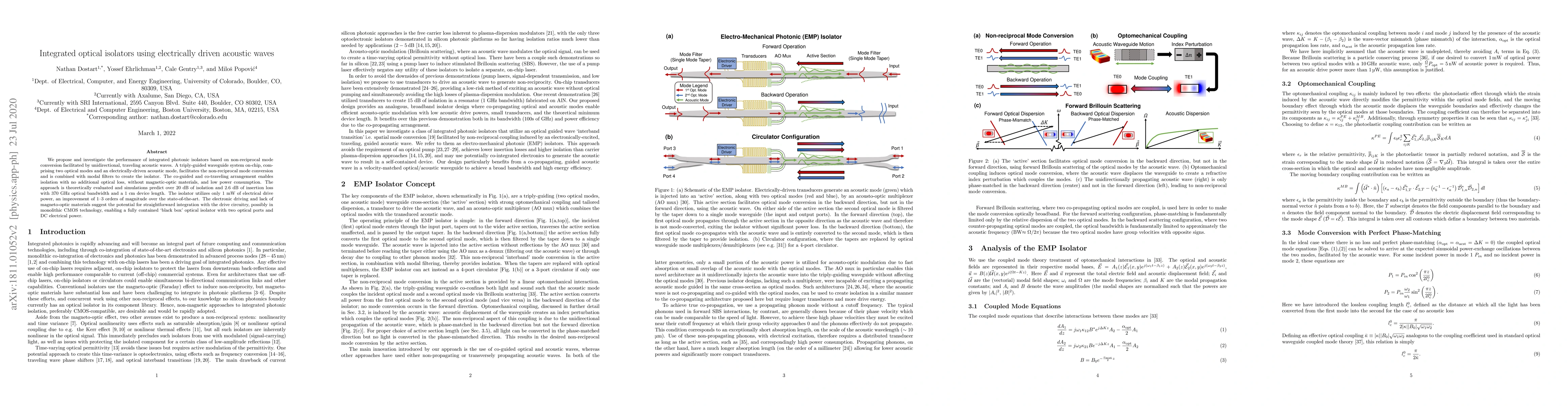 Researchers developed an integrated optical isolator using electrically driven acoustic waves, achieving over 20 dB isolation with minimal power consumption and no magnetic-optic materials.