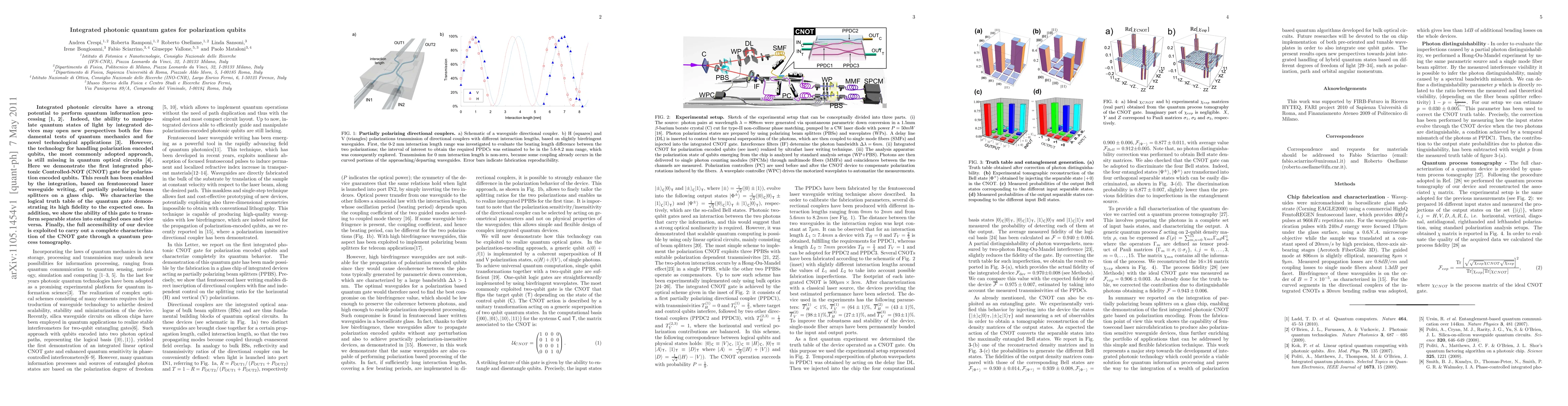 This paper demonstrates the first integrated photonic Controlled-NOT (CNOT) gate for polarization qubits, achieved via femtosecond laser waveguide writing. The gate shows high fidelity and can transform separable states into entangled ones, validated through quantum process tomography.