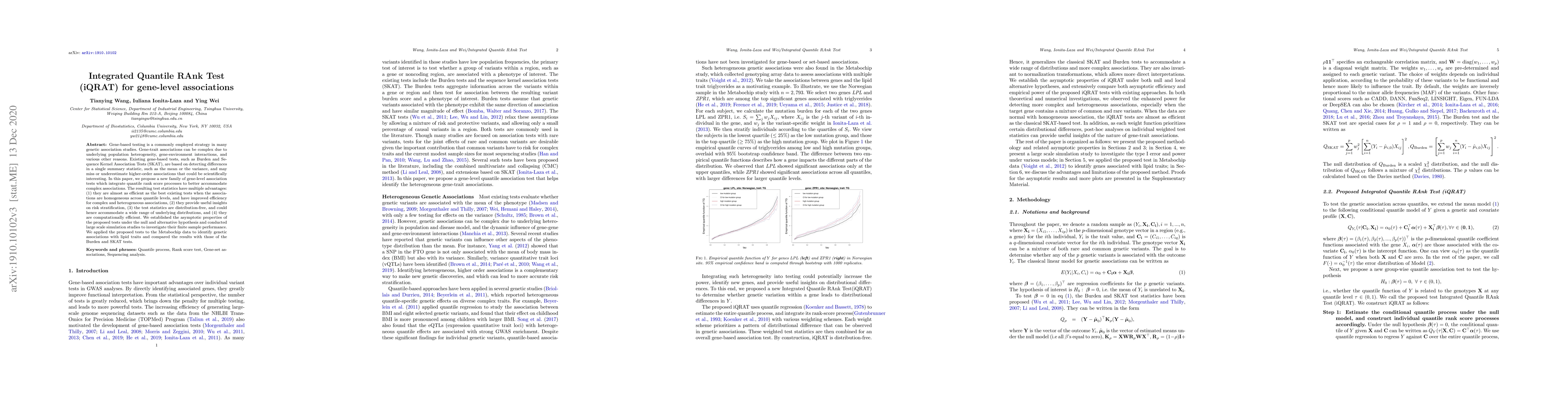 The paper proposes a new gene-level association test, Integrated Quantile RAnk Test (iQRAT), which integrates quantile rank score processes to better handle complex gene-trait associations. The proposed tests are more efficient for heterogeneous associations and provide insights into risk stratification, while maintaining computational efficiency.