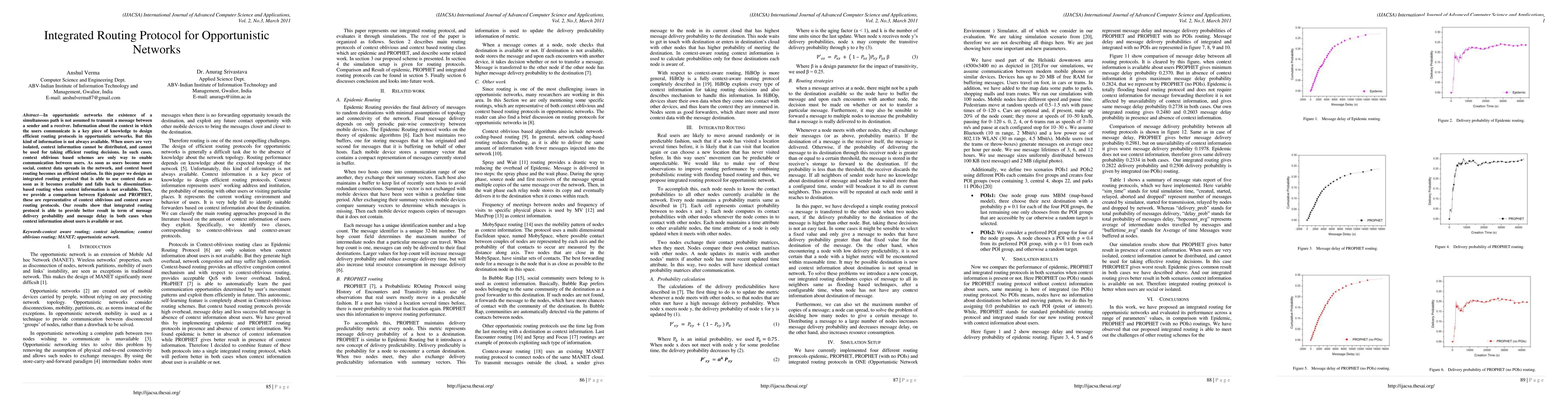 This paper proposes an integrated routing protocol for opportunistic networks that switches between context-aware and context-oblivious routing based on the availability of user context information. The protocol achieves better message delivery and delay performance compared to standalone context-aware and context-oblivious protocols.