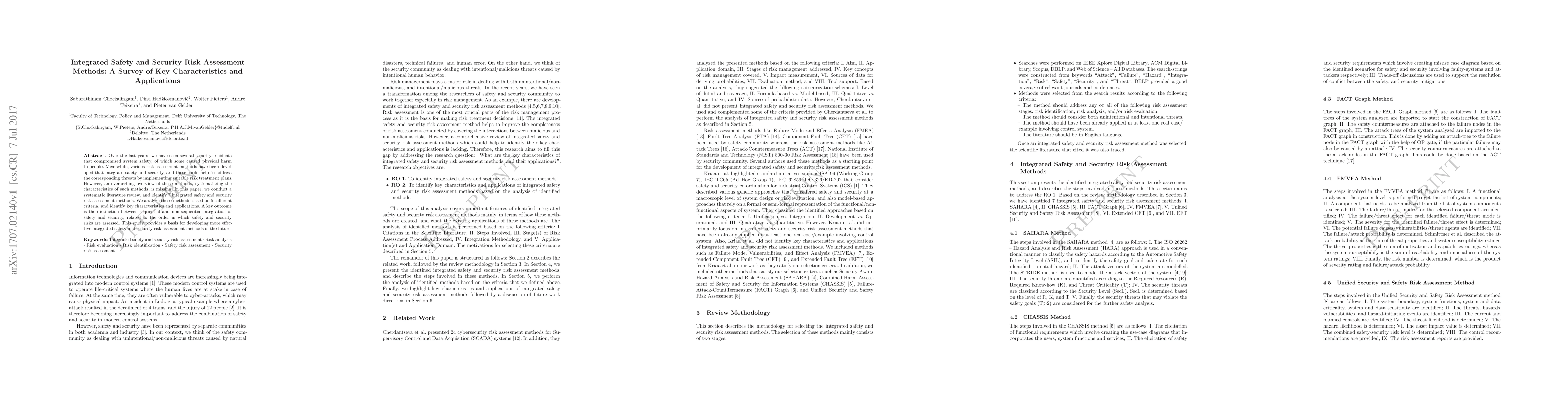 This paper conducts a systematic literature review to identify and analyze seven integrated safety and security risk assessment methods, distinguishing between sequential and non-sequential integration approaches. The study provides key characteristics and applications, offering a foundation for developing more effective risk assessment methods.