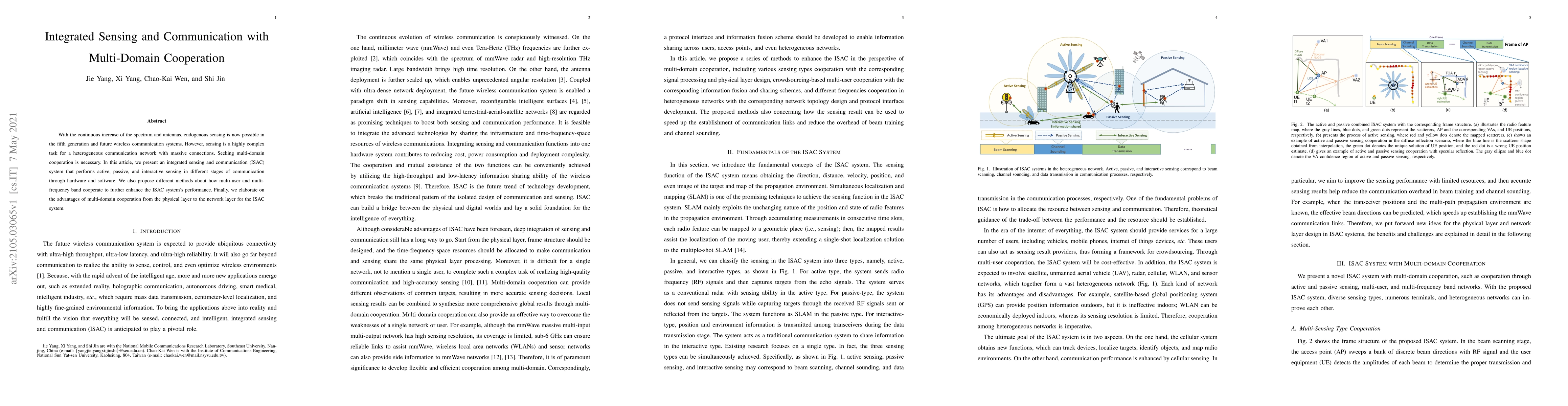 A new integrated sensing and communication system called ISAC enables active, passive, and interactive sensing through hardware and software in 5G and future wireless networks, improving performance with multi-domain cooperation.