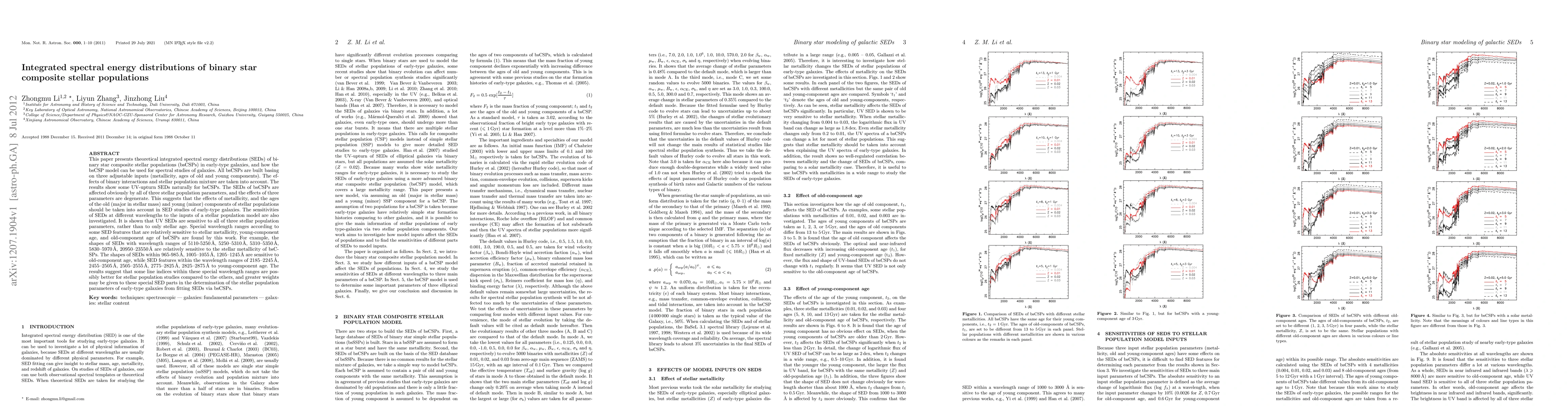 This paper develops theoretical integrated spectral energy distributions (SEDs) of binary star composite stellar populations (bsCSPs) in early-type galaxies, highlighting the impact of metallicity and age components on SED features. It identifies specific wavelength ranges that are sensitive to different stellar population parameters, suggesting comprehensive consideration of these factors in SED studies of galaxies.