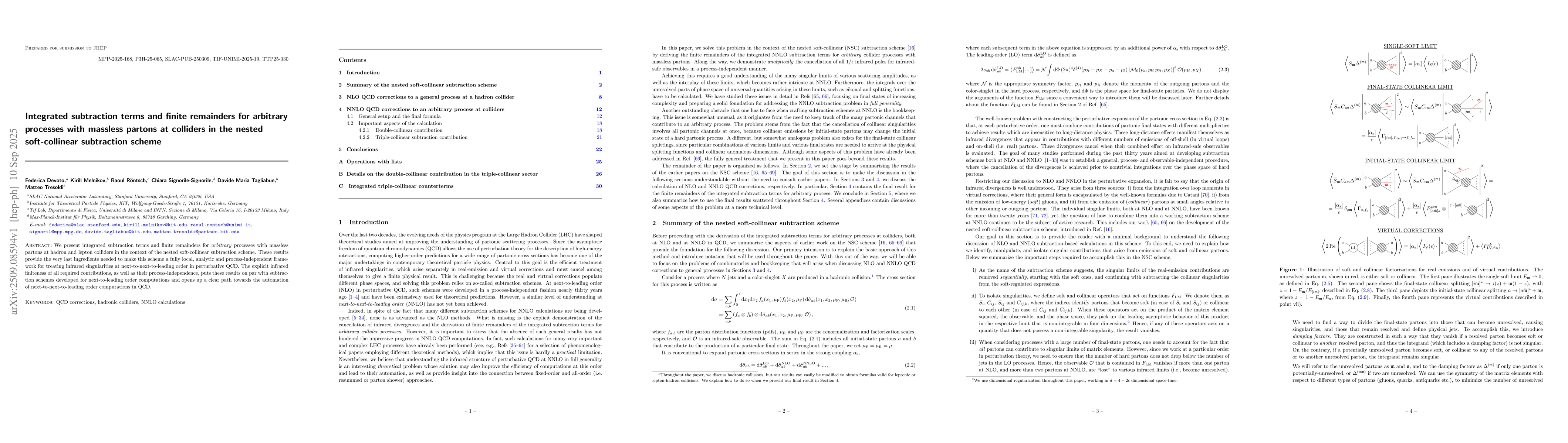 We present integrated subtraction terms and finite remainders for arbitrary processes with massless partons at hadron and lepton colliders in the context of the nested soft-collinear subtraction scheme. These results provide the very last ingredients needed to make this scheme a fully local, analytic and process-independent framework for treating infrared singularities at next-to-next-to-leading order in perturbative QCD. The explicit infrared finiteness of all required contributions, as well as their process-independence, puts these results on par with subtraction schemes developed for next-to-leading order computations and opens up a clear path towards the automation of next-to-next-to-leading order computations in QCD.