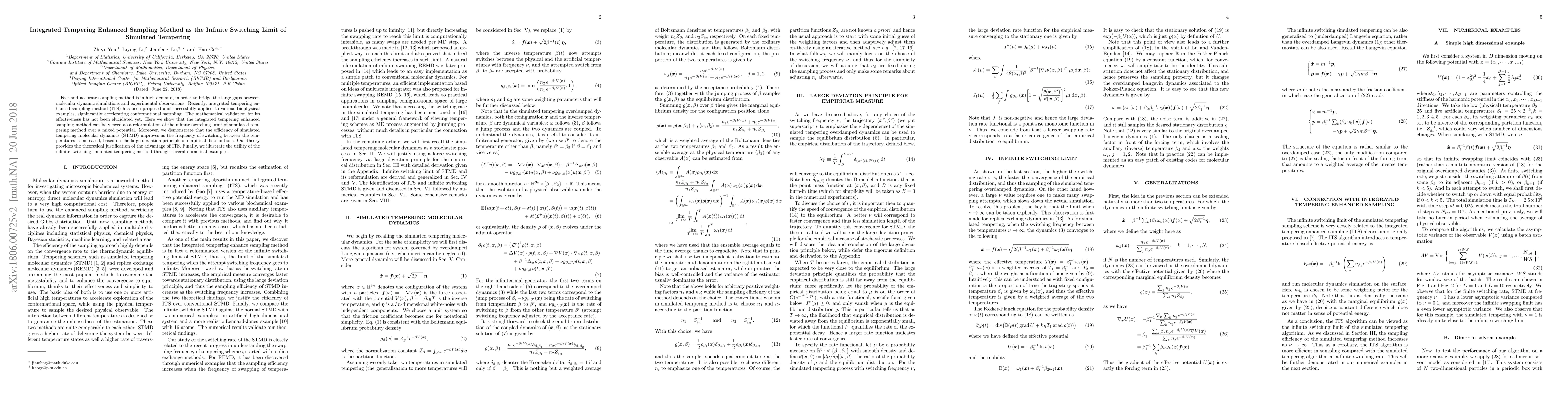 This paper demonstrates that the integrated tempering enhanced sampling method (ITS) is a reformulation of the infinite switching limit of simulated tempering (ST) over a mixed potential. It provides theoretical justification for ITS's efficiency based on the large deviation principle, showing improved STMD performance with increased switching frequency.