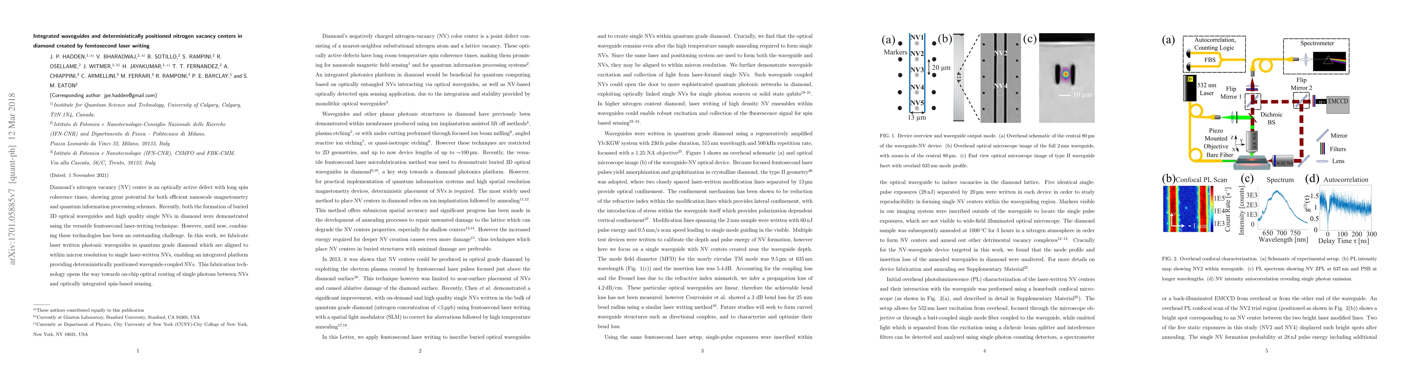 This research paper presents the fabrication of integrated photonic waveguides and deterministically positioned nitrogen vacancy (NV) centers in diamond using femtosecond laser writing. This novel technology enables efficient nanoscale magnetometry and quantum information processing by aligning waveguides with single NVs, paving the way for on-chip optical routing and spin-based sensing.