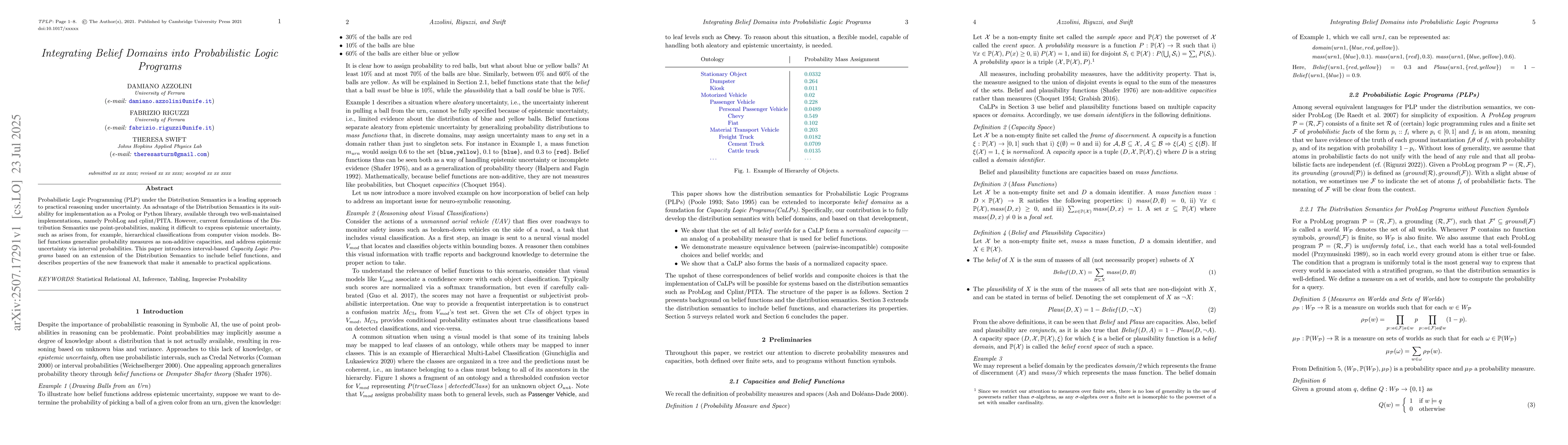 Probabilistic Logic Programming (PLP) under the Distribution Semantics is a leading approach to practical reasoning under uncertainty. An advantage of the Distribution Semantics is its suitability for implementation as a Prolog or Python library, available through two well-maintained implementations, namely ProbLog and cplint/PITA. However, current formulations of the Distribution Semantics use point-probabilities, making it difficult to express epistemic uncertainty, such as arises from, for example, hierarchical classifications from computer vision models. Belief functions generalize probability measures as non-additive capacities, and address epistemic uncertainty via interval probabilities. This paper introduces interval-based Capacity Logic Programs based on an extension of the Distribution Semantics to include belief functions, and describes properties of the new framework that make it amenable to practical applications.