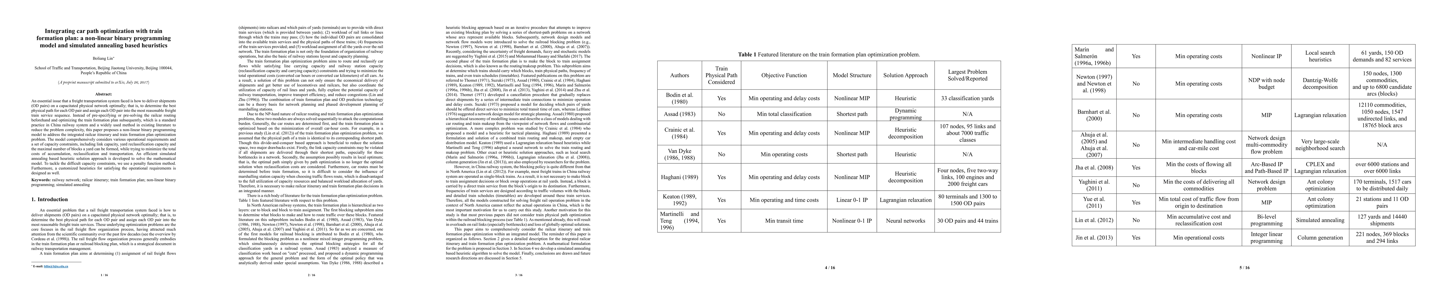 An essential issue that a freight transportation system faced is how to deliver shipments (OD pairs) on a capacitated physical network optimally; that is, to determine the best physical path for each OD pair and assign each OD pair into the most reasonable freight train service sequence. Instead of pre-specifying or pre-solving the railcar routing beforehand and optimizing the train formation plan subsequently, which is a standard practice in China railway system and a widely used method in existing literature to reduce the problem complexity, this paper proposes a non-linear binary programming model to address the integrated railcar itinerary and train formation plan optimization problem. The model comprehensively considers various operational requirements and a set of capacity constraints, including link capacity, yard reclassification capacity and the maximal number of blocks a yard can be formed, while trying to minimize the total costs of accumulation, reclassification and transportation. An efficient simulated annealing based heuristic solution approach is developed to solve the mathematical model. To tackle the difficult capacity constraints, we use a penalty function method. Furthermore, a customized heuristics for satisfying the operational requirements is designed as well.