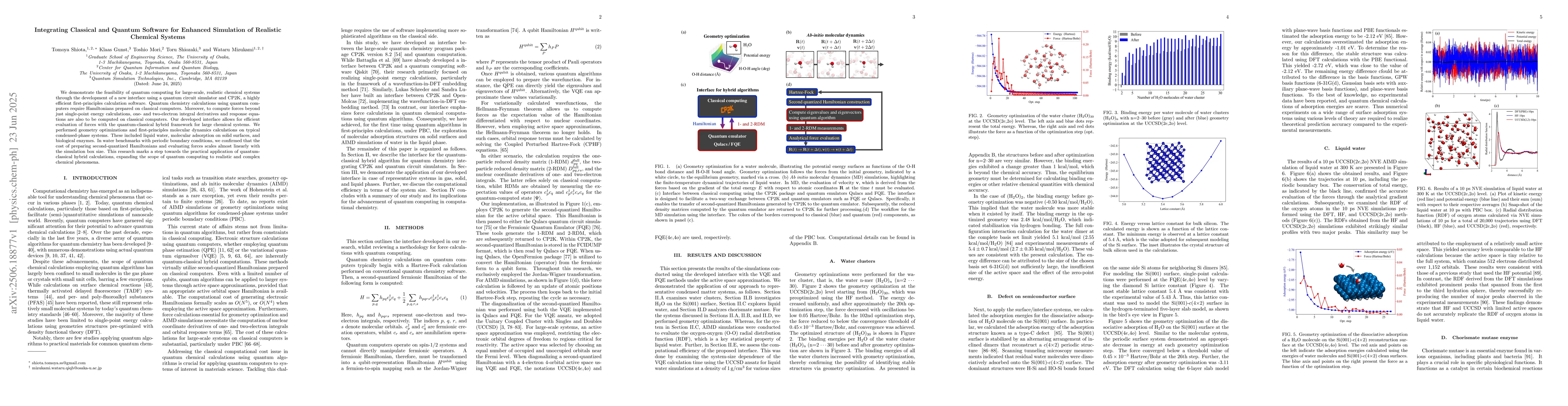 The research demonstrates the integration of classical and quantum software for simulating large-scale, realistic chemical systems using a quantum circuit simulator and CP2K, a first-principles calculation software. The interface allows for efficient evaluation of forces in a quantum-classical hybrid framework.