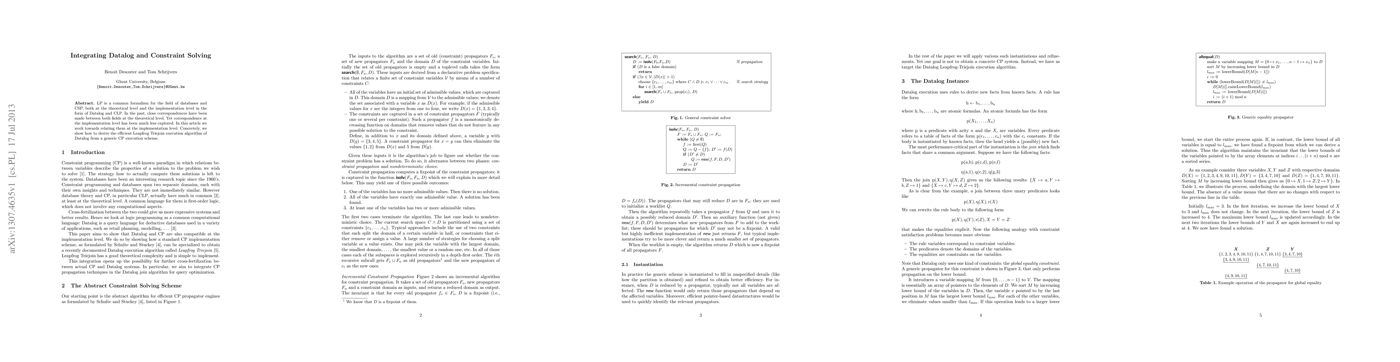 LP is a common formalism for the field of databases and CSP, both at the theoretical level and the implementation level in the form of Datalog and CLP. In the past, close correspondences have been made between both fields at the theoretical level. Yet correspondence at the implementation level has been much less explored. In this article we work towards relating them at the implementation level. Concretely, we show how to derive the efficient Leapfrog Triejoin execution algorithm of Datalog from a generic CP execution scheme.