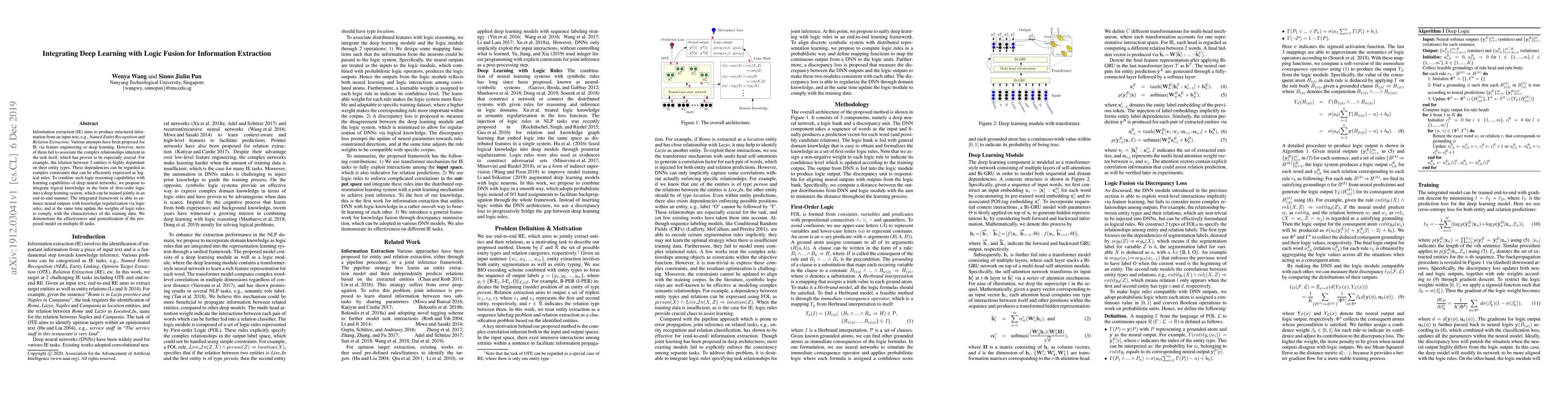 This paper proposes a framework that integrates deep learning with first-order logic to enhance information extraction tasks, such as Named Entity Recognition and Relation Extraction, by incorporating logical constraints to better capture complex relationships. The model is trained end-to-end, allowing it to update logic rules based on the training data, demonstrating improved performance on various IE tasks.