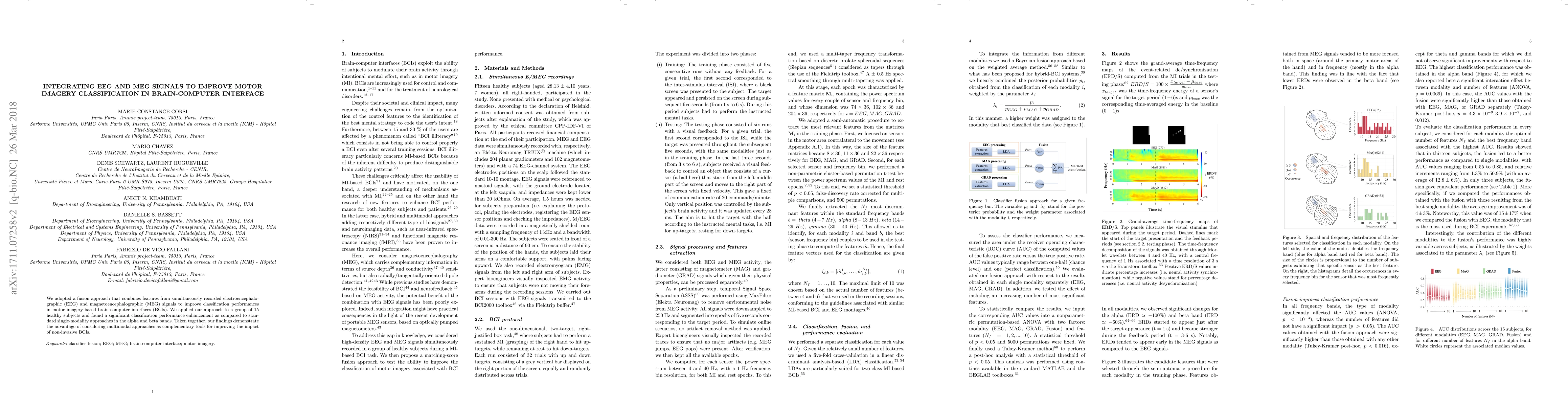 This study proposes a fusion method combining EEG and MEG signals to enhance motor imagery classification in brain-computer interfaces, showing significant performance improvement over single-modality approaches in healthy subjects. The results suggest that multimodal integration can boost the effectiveness of non-invasive BCIs.