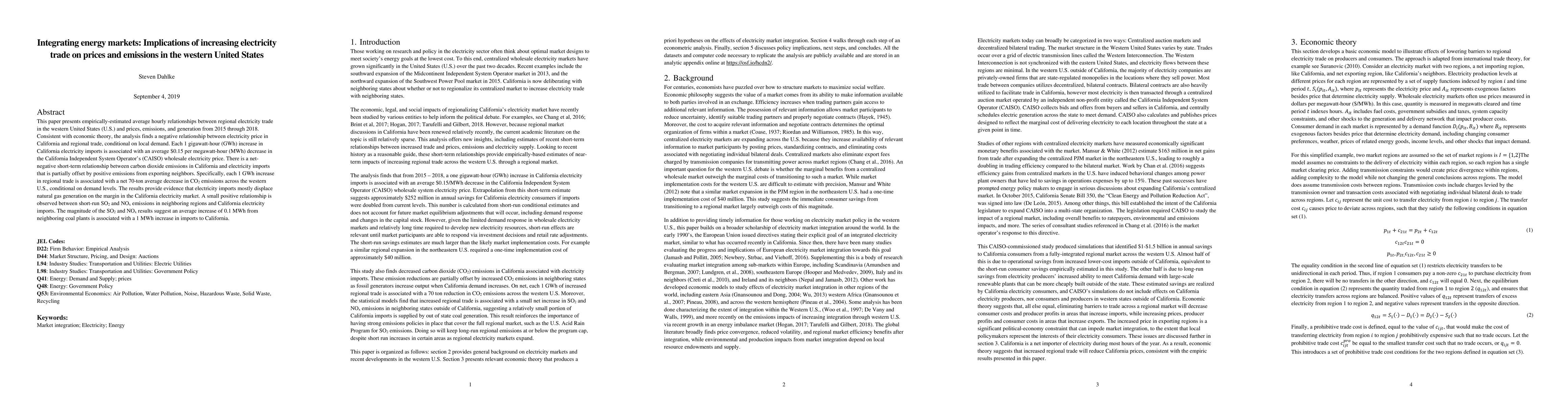 This study finds that increased electricity trade in the western U.S. lowers California's electricity prices and reduces overall CO2 emissions, though it slightly increases SO2 and NOx emissions in neighboring regions. Each 1 GWh increase in imports correlates with a $0.15 drop in California's prices and a 70-ton CO2 reduction.