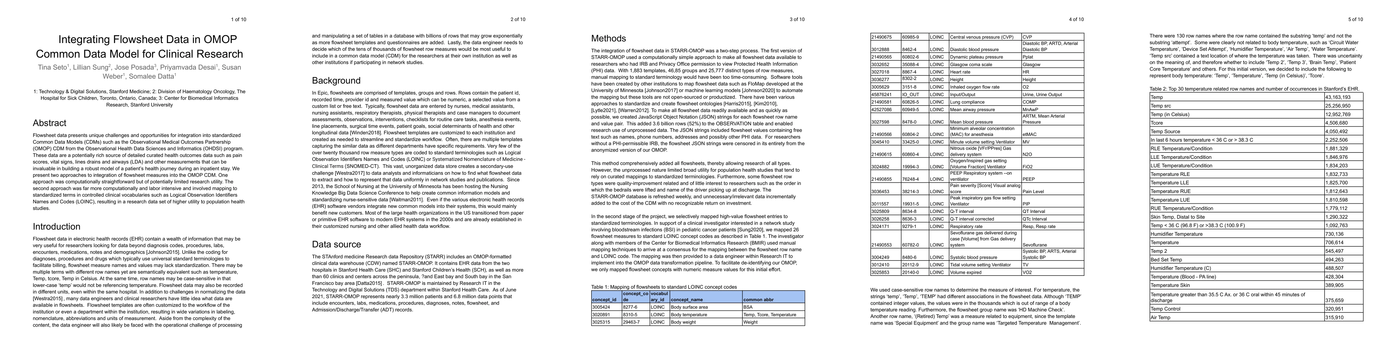 The paper details two approaches to integrate flowsheet data into the OMOP CDM. The first was computationally straightforward but of limited utility, while the second mapped to standardized terms in LOINC, resulting in a higher utility dataset for population health studies.