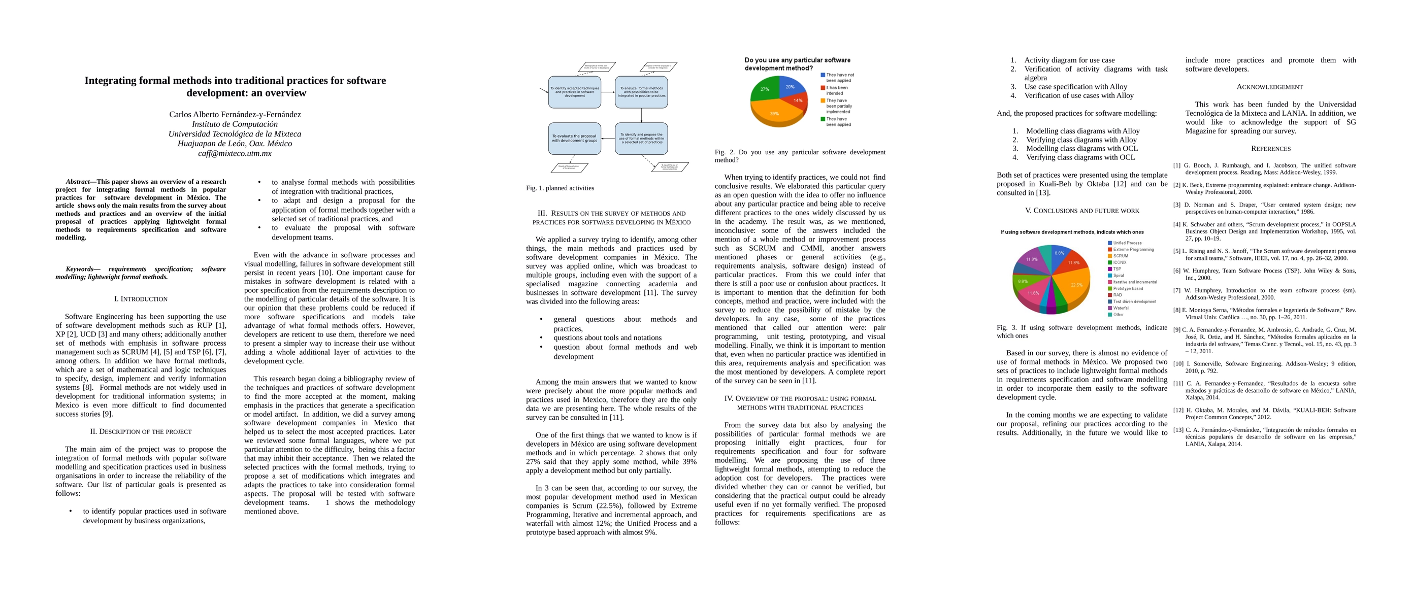 This paper provides an overview of a research project integrating formal methods into traditional software development practices in Mexico, highlighting survey results and an initial proposal for lightweight formal methods in requirements specification and software modeling.