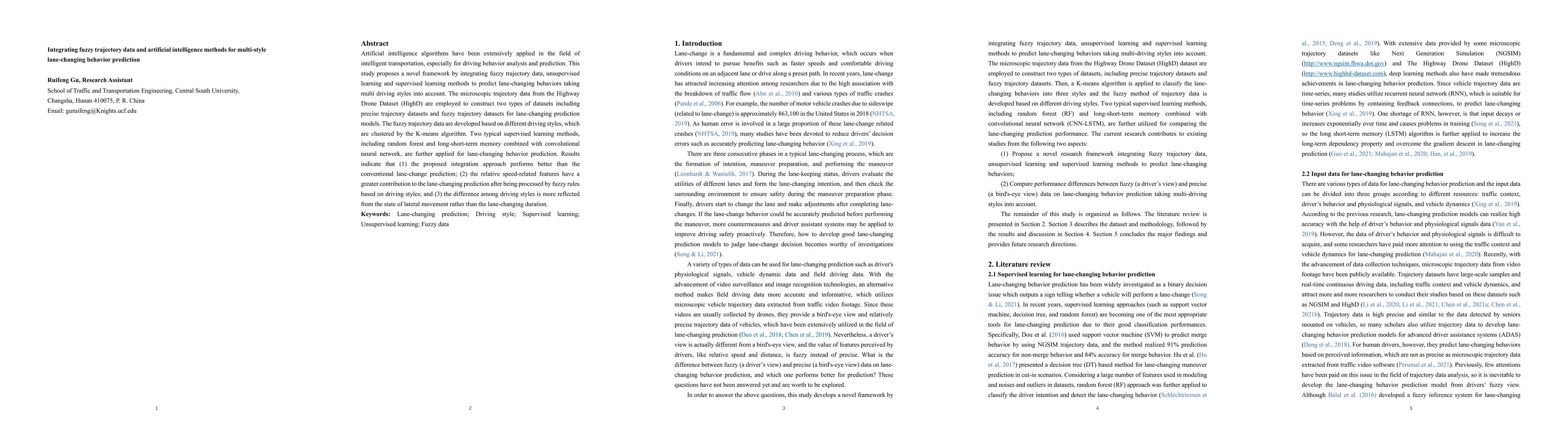 A new framework integrates fuzzy trajectory data with AI methods to predict multi-style lane-changing behavior, outperforming conventional approaches and highlighting the importance of driving style and lateral movement in lane-changing decisions.
