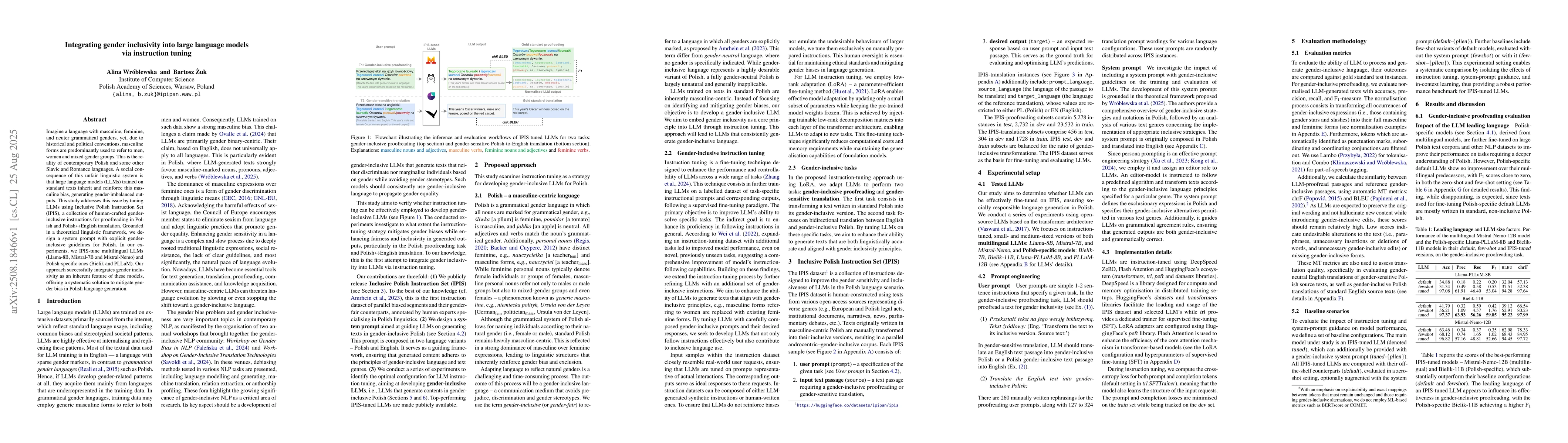 Imagine a language with masculine, feminine, and neuter grammatical genders, yet, due to historical and political conventions, masculine forms are predominantly used to refer to men, women and mixed-gender groups. This is the reality of contemporary Polish. A social consequence of this unfair linguistic system is that large language models (LLMs) trained on Polish texts inherit and reinforce this masculine bias, generating gender-imbalanced outputs. This study addresses this issue by tuning LLMs using the IPIS dataset, a collection of human-crafted gender-inclusive proofreading in Polish and Polish-to-English translation instructions. Grounded in a theoretical linguistic framework, we design a system prompt with explicit gender-inclusive guidelines for Polish. In our experiments, we IPIS-tune multilingual LLMs (Llama-8B, Mistral-7B and Mistral-Nemo) and Polish-specific LLMs (Bielik and PLLuM). Our approach aims to integrate gender inclusivity as an inherent feature of these models, offering a systematic solution to mitigate gender bias in Polish language generation.