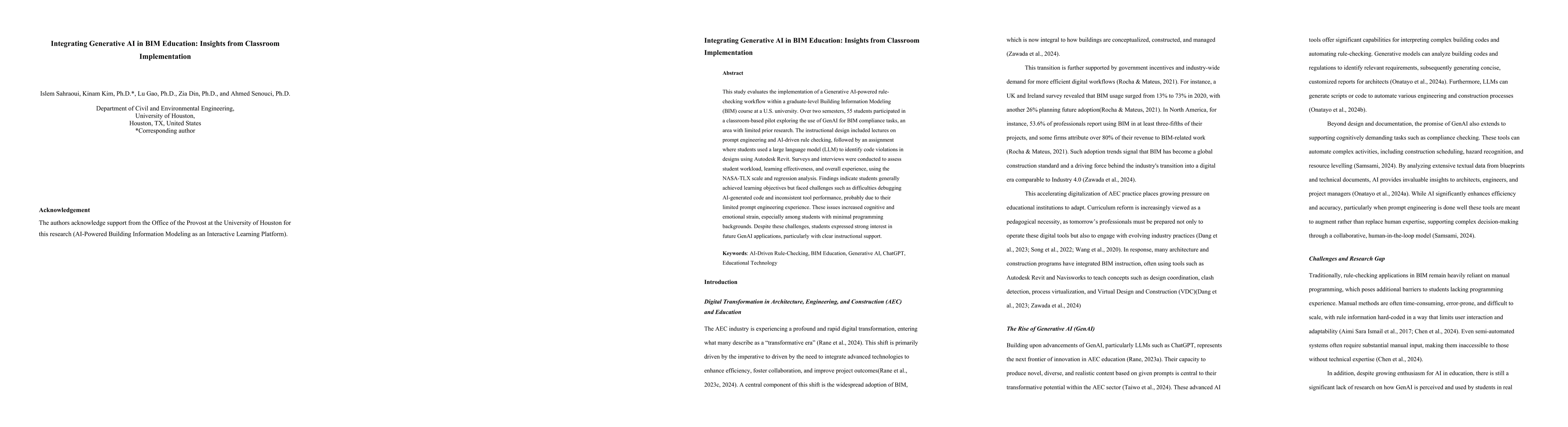 This study evaluates the implementation of a Generative AI-powered rule checking workflow within a graduate-level Building Information Modeling (BIM) course at a U.S. university. Over two semesters, 55 students participated in a classroom-based pilot exploring the use of GenAI for BIM compliance tasks, an area with limited prior research. The instructional design included lectures on prompt engineering and AI-driven rule checking, followed by an assignment where students used a large language model (LLM) to identify code violations in designs using Autodesk Revit. Surveys and interviews were conducted to assess student workload, learning effectiveness, and overall experience, using the NASA-TLX scale and regression analysis. Findings indicate students generally achieved learning objectives but faced challenges such as difficulties debugging AI-generated code and inconsistent tool performance, probably due to their limited prompt engineering experience. These issues increased cognitive and emotional strain, especially among students with minimal programming backgrounds. Despite these challenges, students expressed strong interest in future GenAI applications, particularly with clear instructional support.