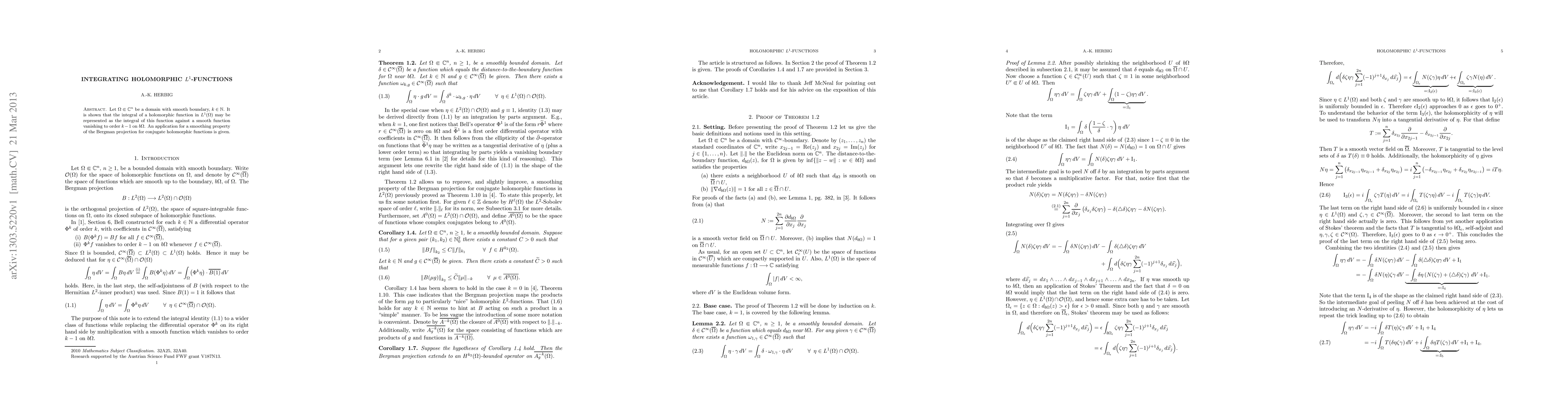 This paper demonstrates that the integral of a holomorphic $L^1$-function within a smoothly bounded domain in $\mathbb{C}^n$ can be expressed via integration against a smooth function vanishing to higher order on the boundary. An application illustrates the smoothing effect of the Bergman projection on conjugate holomorphic functions.