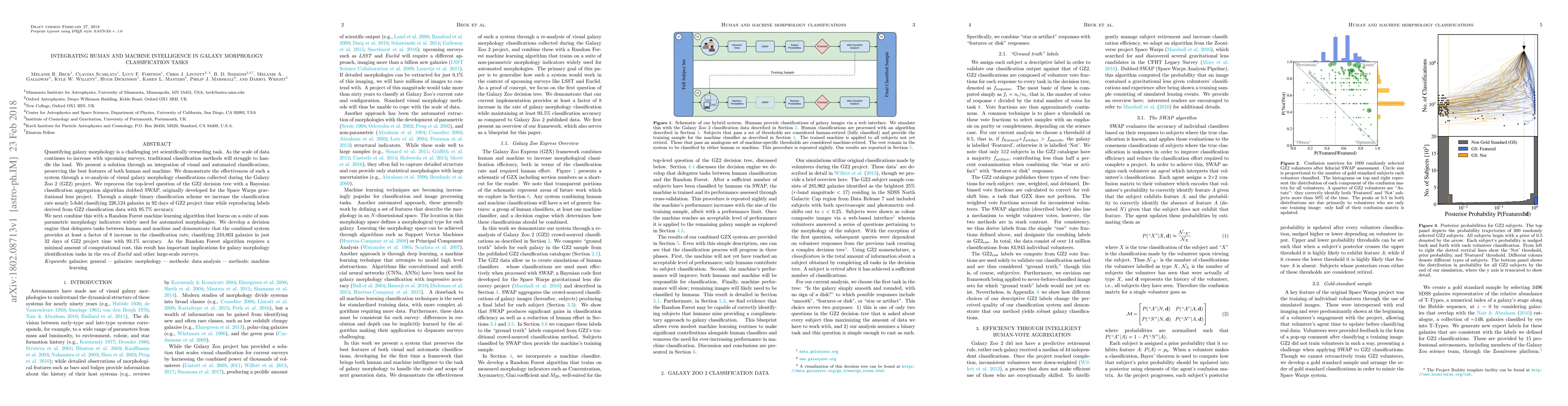 This paper integrates human and machine intelligence to enhance galaxy morphology classification, combining visual human classifications from Galaxy Zoo 2 with a Bayesian algorithm and a Random Forest machine learning model. The hybrid system significantly boosts classification rates and accuracy, classifying over 200,000 galaxies in a fraction of the time compared to traditional methods.