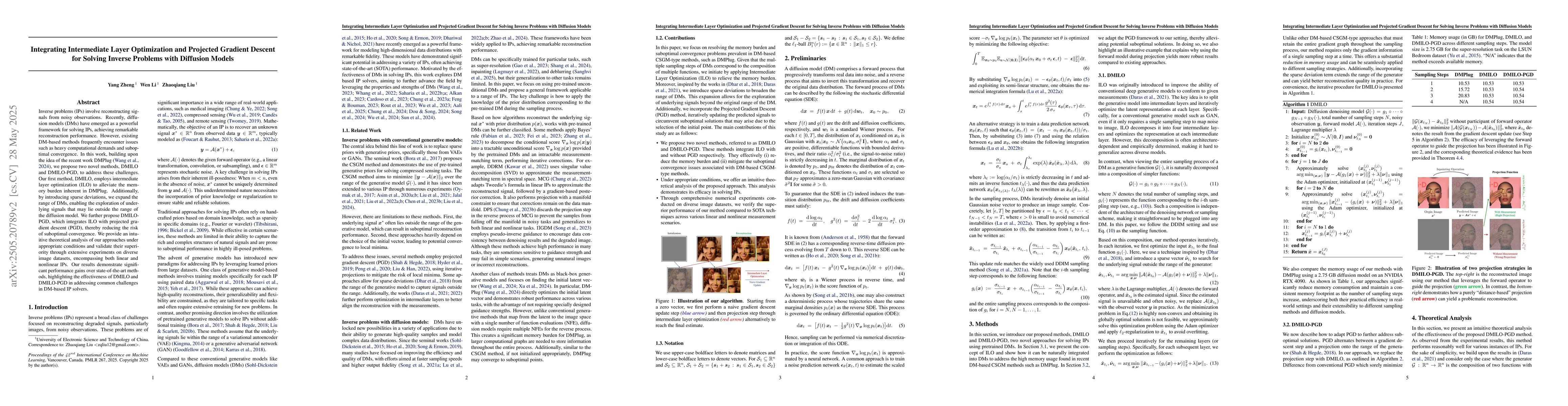 Two new methods, DMILO and DMILO-PGD, improve diffusion models for solving inverse problems, achieving better performance and reducing computational demands.