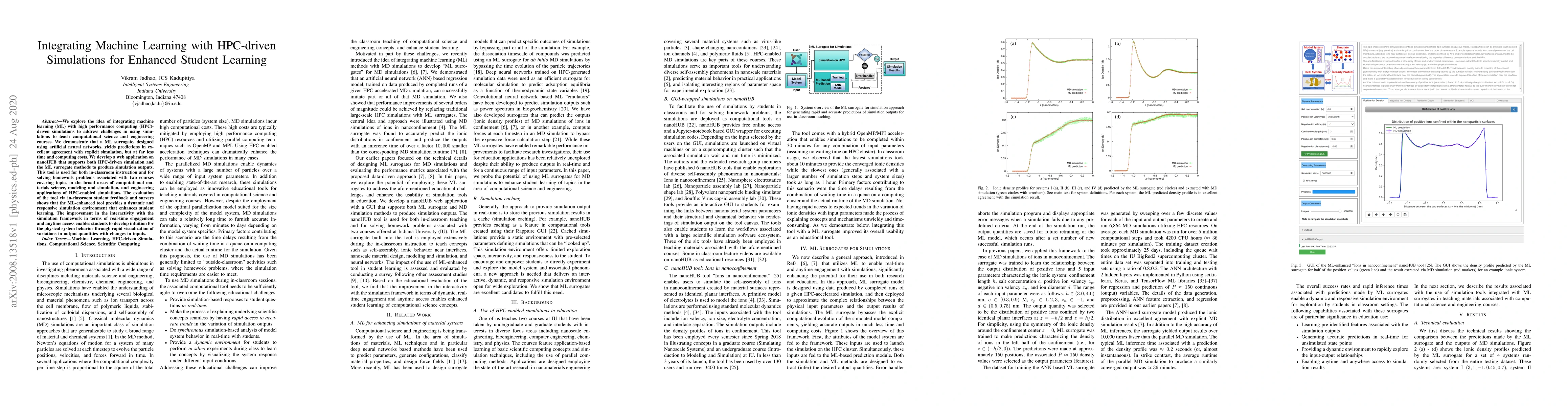 This paper integrates machine learning with high-performance computing simulations to improve teaching computational science and engineering. A web application on nanoHUB supports both HPC simulations and ML surrogates, enhancing student learning through real-time engagement and visualization.