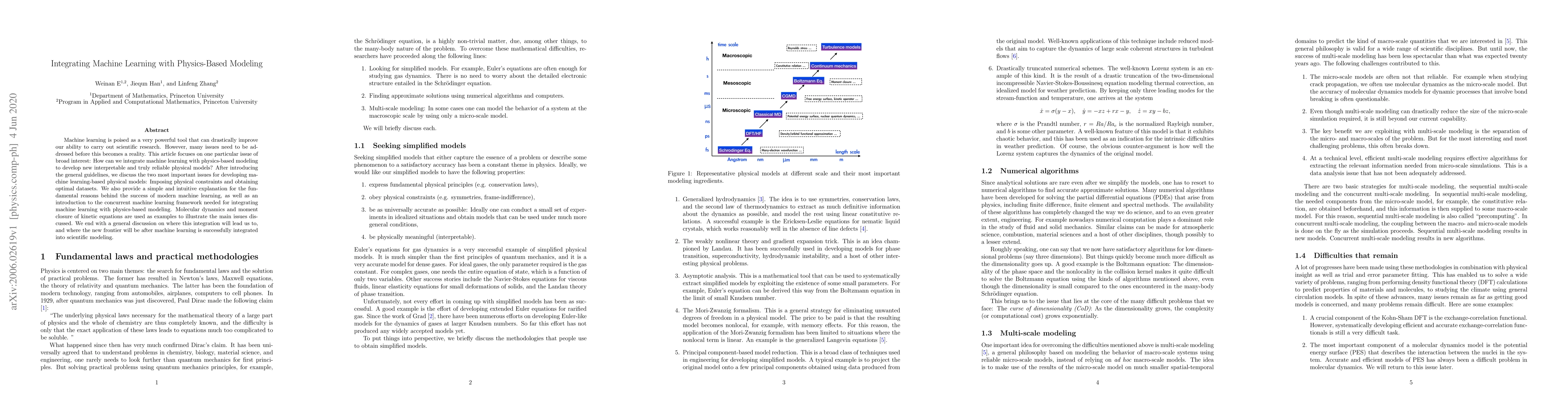 This paper explores the integration of machine learning with physics-based modeling to create reliable and interpretable physical models, focusing on imposing physical constraints and obtaining optimal datasets. It uses molecular dynamics and kinetic equations as examples to illustrate these concepts and discusses the future frontiers of this integration.