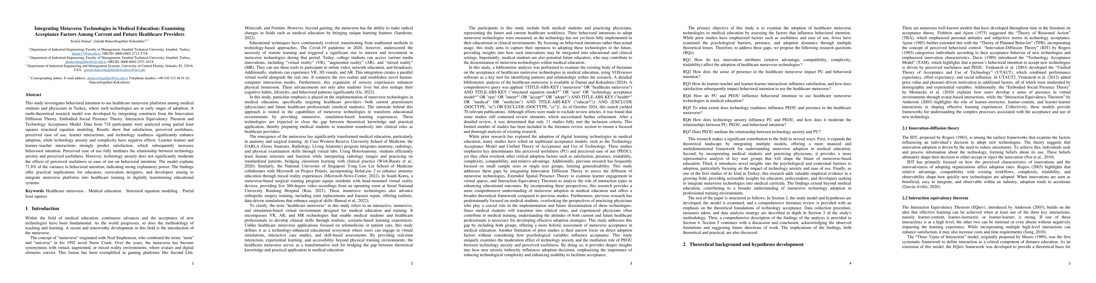 This research provides critical insights into how educational institutions can effectively integrate metaverse technologies, potentially transforming medical training through enhanced engagement and immersive learning experiences.